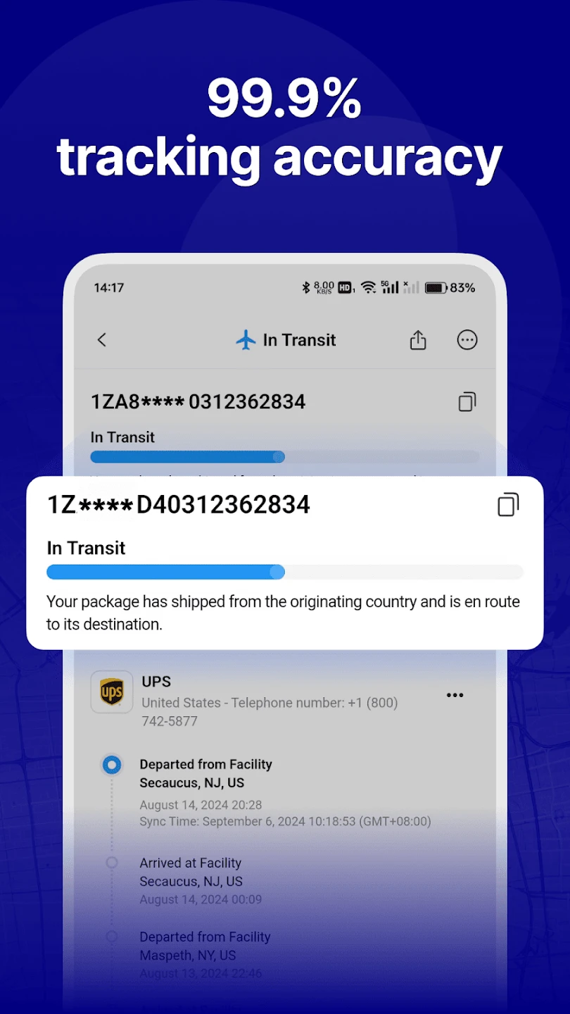 - Order Management & History: Save and organize multiple tracking numbers in folders, view past shipment records, and access saved details easily. This feature matters for busy individuals or businesses handling numerous shipments simultaneously, offering better organization, faster retrieval of past tracking information, and improved time management capabilities compared to manual methods.