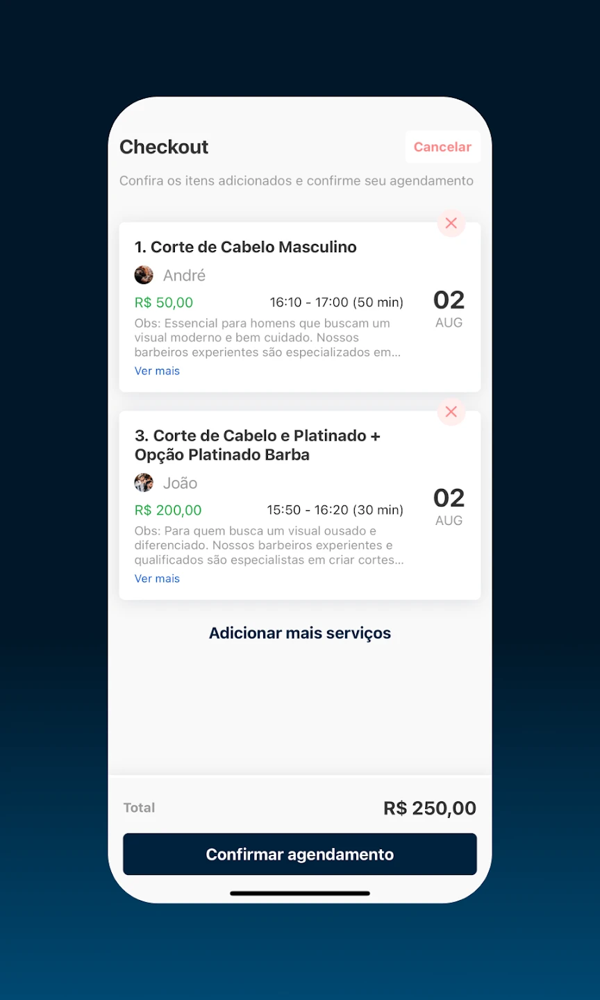 The core value of AppBarber: Cliente lies in its ability to reduce administrative overhead and improve client engagement through automated reminders and centralized communication. Users can track their appointments, receive notifications about shop updates, and manage service requests seamlessly. This tool empowers barbers to focus more on their craft and deliver personalized service.