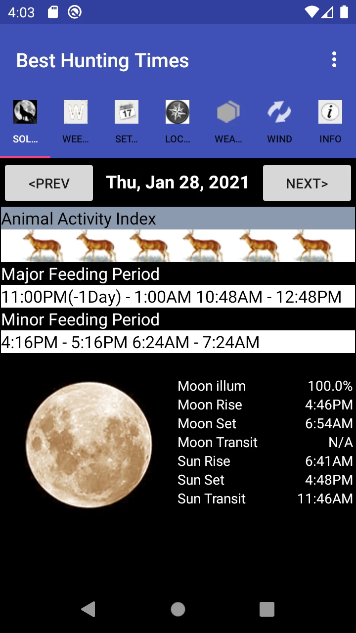 - Sunrise/Sunset Integration: Seamlessly syncs with your location to automatically calculate dawn and dusk times, the most active periods for many game species. By focusing hunts around these natural transitions, users consistently report higher success rates during early morning or late evening sessions.