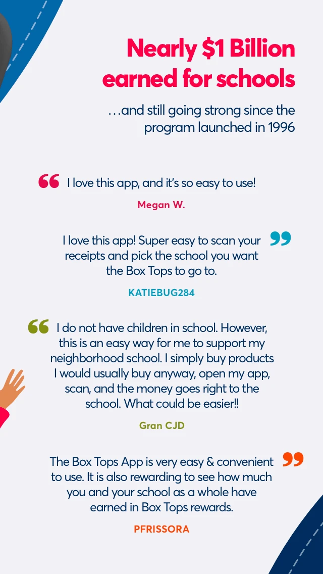 • User-Friendly Dashboard & Notifications: Access a personalized dashboard displaying your current balance, recent activities, and upcoming redemptions. Notifications alert you to account activity, such as points earned or redemption status updates, ensuring you stay informed about your participation in Box Tops for Education™ and never miss an opportunity.
