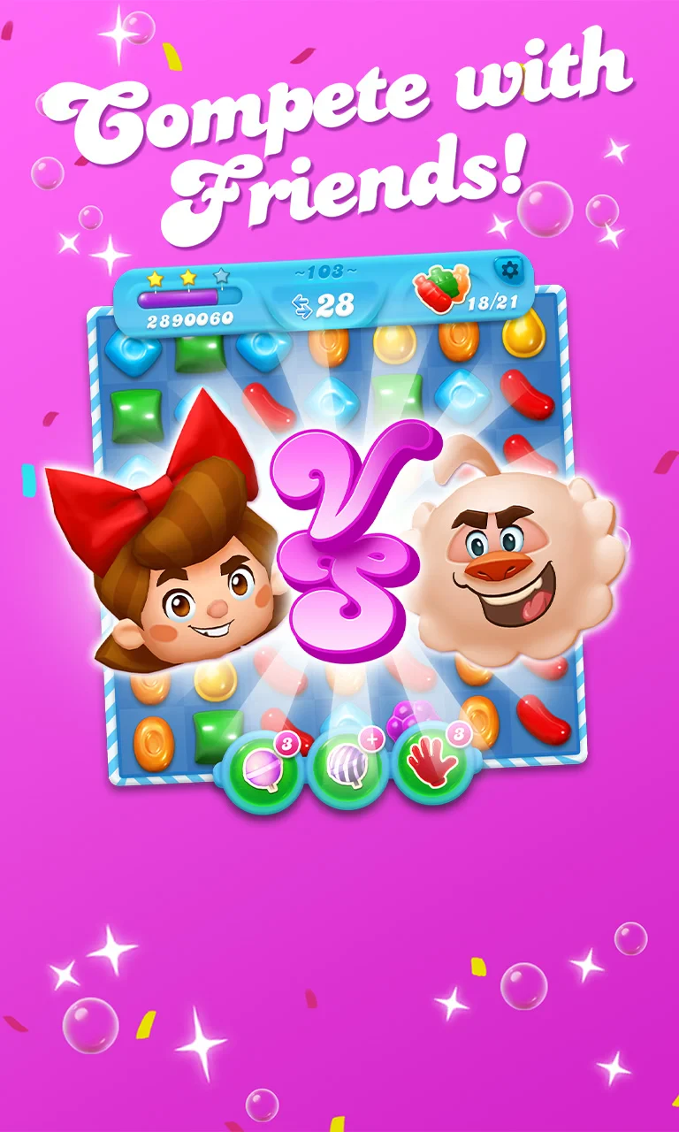 - [Modes or Levels]: “Candy Crush Soda Saga” primarily features a single-player campaign consisting of countless levels across multiple themed worlds. This endless campaign structure ensures high replayability, with new levels, obstacles, and challenges constantly introduced. There are also special event modes and limited-time bonus levels for added variety.
