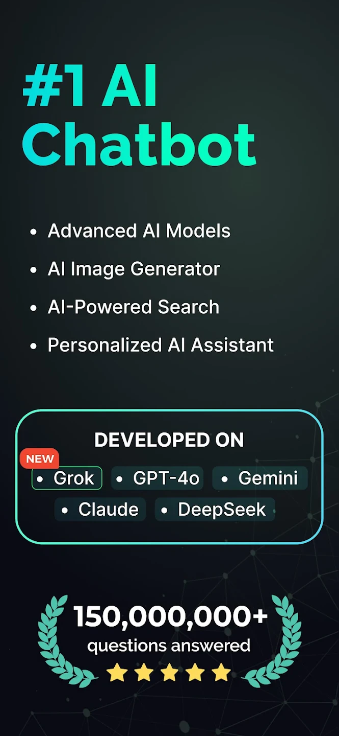 • Multi-Topic Knowledge Base: Leverage the extensive training of this Chatbot AI – Chat & Ask AI app, which draws from a vast array of information across countless subjects. This feature enables users to ask anything, from complex technical questions to casual curiosity, all within a single application, significantly broadening the scope of possible interactions.