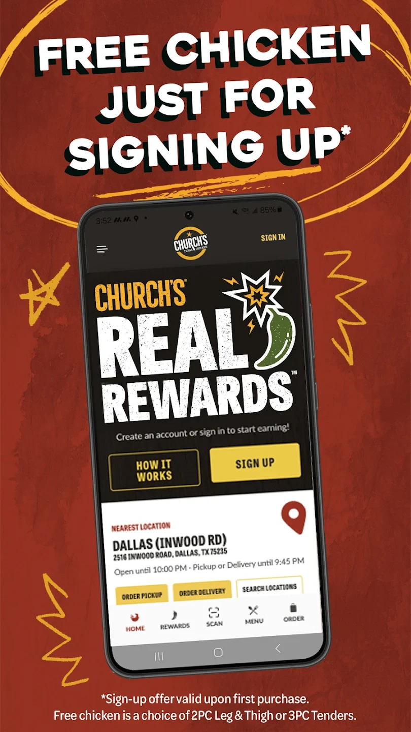• Ordering & Checkout: Quickly browse the menu, customize your order, and check out faster than ever before, often using saved payment details. This saves valuable time during your lunch break and makes grabbing your favorite Church’s Texas Chicken® items seamless.