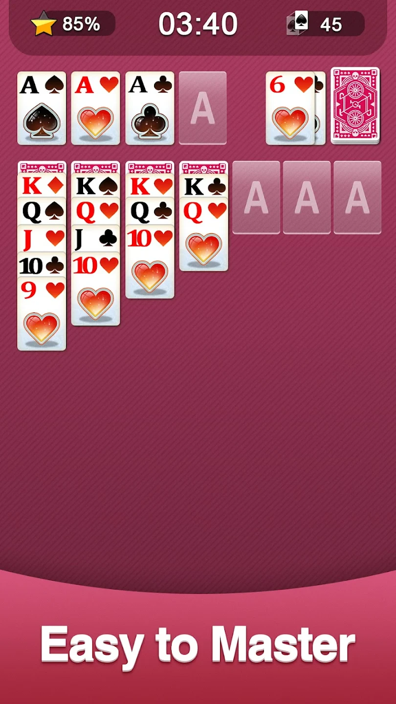• [Modes or Levels]: Classic Solitaire typically offers the standard single-player experience, sometimes with variations like timed modes or undo features. Replayability comes from multiple daily challenges, score tracking, and occasionally special events with unique card layouts.