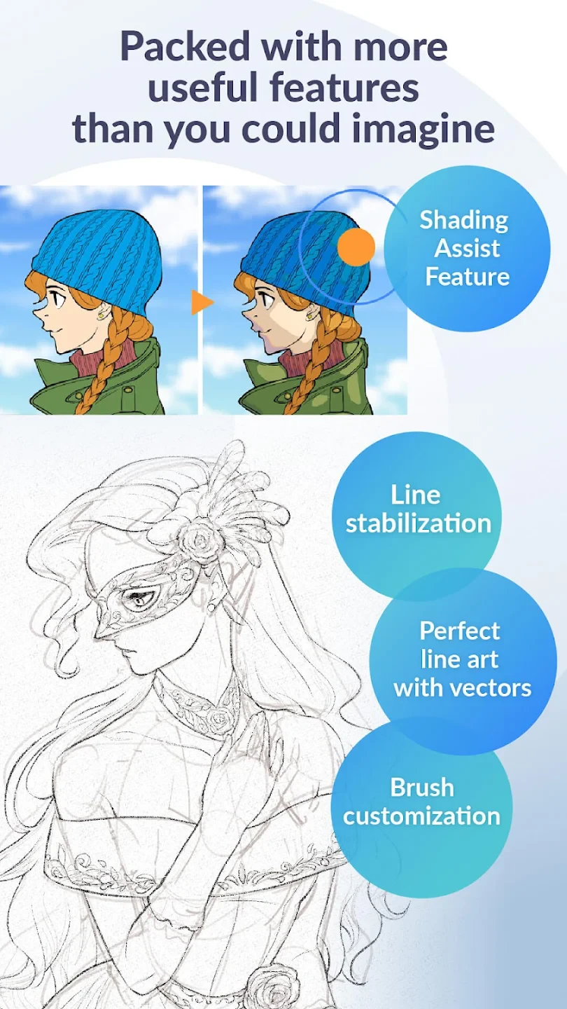 • Specialized Brush Engine: Includes a wide range of realistic and stylized brushes optimized for manga and illustration, featuring pressure sensitivity and texture mapping for professional-quality line art and shading.