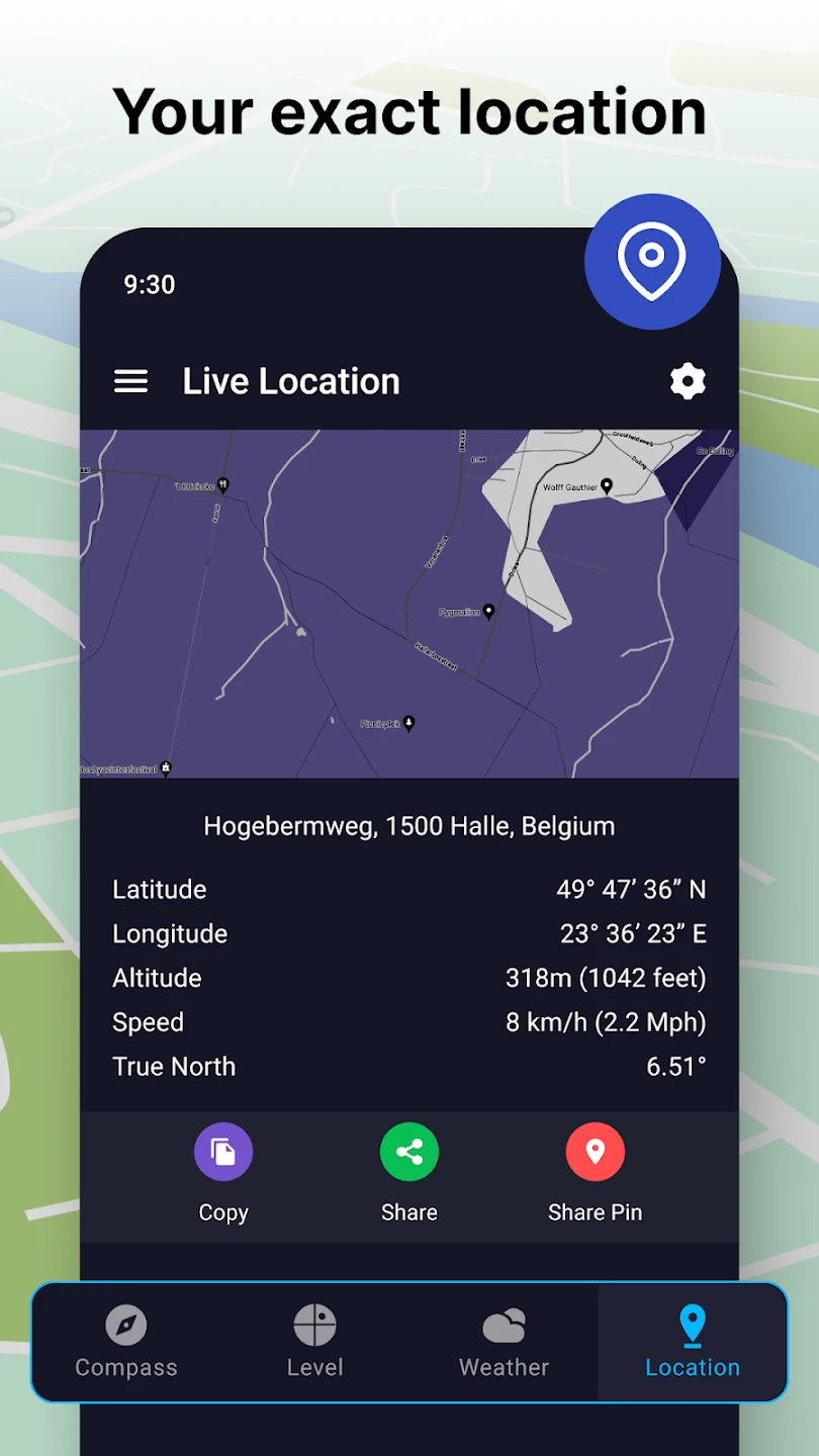 - Tilt Sensor Support: By utilizing your phone’s accelerometer, the compass automatically adjusts to maintain an accurate horizontal reading if your phone is held at an angle, preventing skewed directions. It allows you to hold the phone comfortably without constant level adjustments.