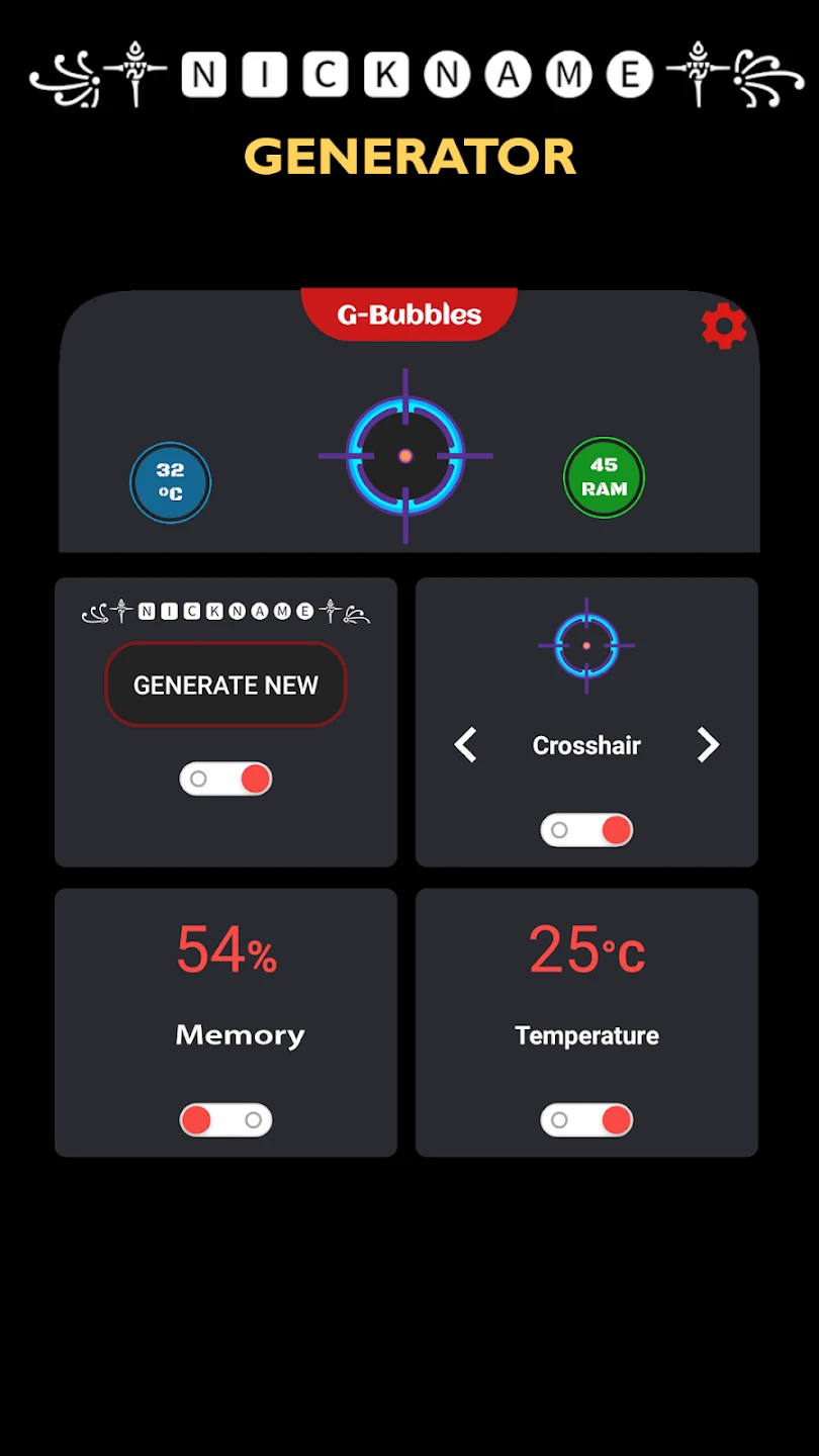 The Crosshair & Nickname Generator app provides a fun and easy way for gamers to customize their in-game experience. By generating unique crosshairs and creative nickname suggestions, it helps personalize gameplay and add flair to profiles. Perfect for gamers of all types who enjoy expressing their individual style.
