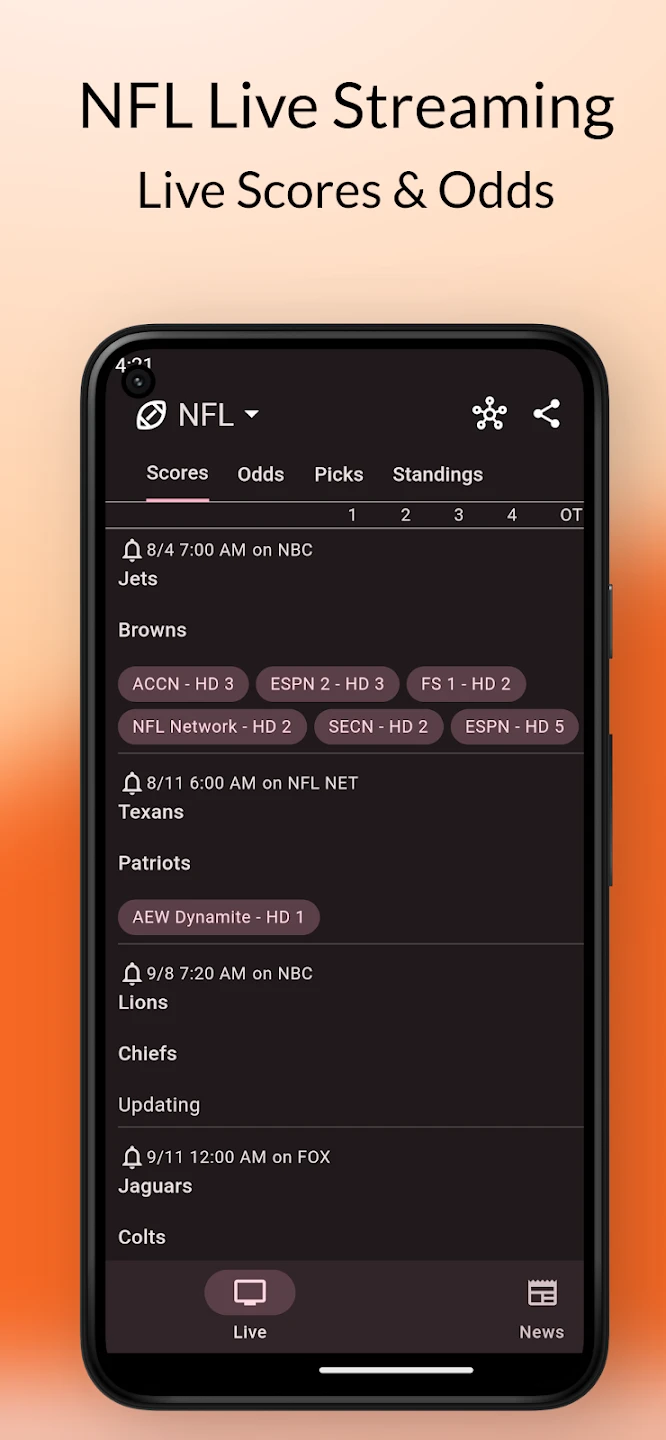- Multiple Camera Angles: Seamlessly switch between studio-quality camera feeds, dynamic sideline views, and instant replay perspectives during broadcasts. This functionality dramatically enhances situational awareness during critical moments, allowing users to experience the game from different vantage points without missing a single second of gameplay.