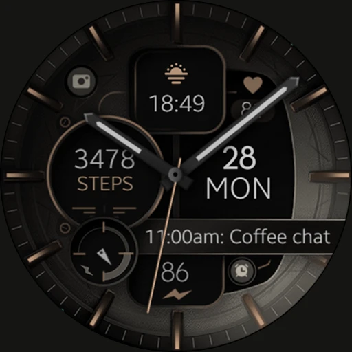 The Dream 132 bronze watch face appeals by seamlessly blending vintage style with smart functionality; its realistic texture mimics the subtle patina of actual bronze. Users find it particularly useful for adding a touch of elegance or individuality to their smartwatch, making a statement while still enjoying digital features like notifications and complications, enhancing their daily digital experience with a touch of refined taste.