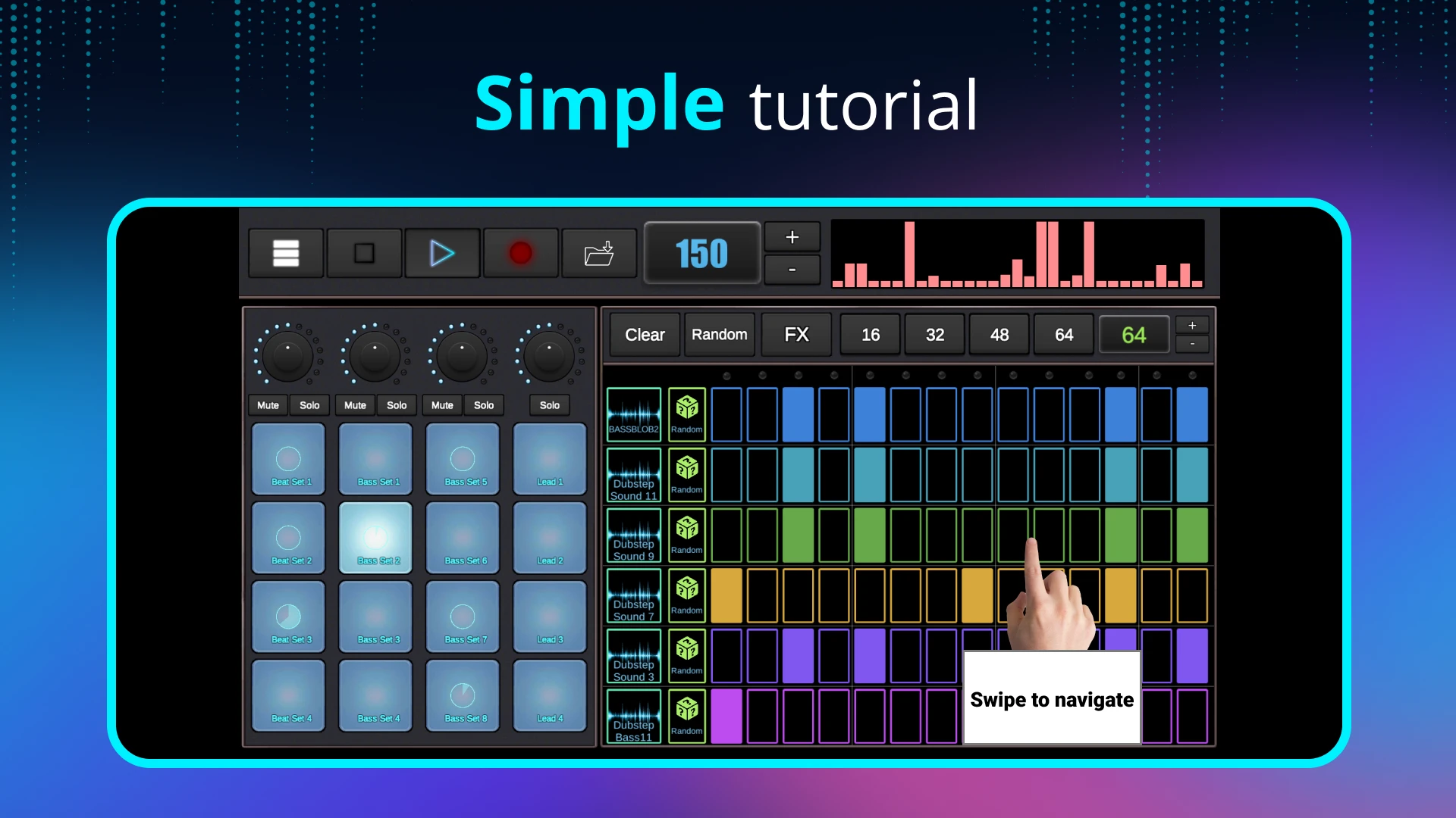 • Adjustable Tempo & Grid Size: Fine-tune the track’s tempo from slow Dubstep drones to faster rhythms, and control the precision of step placement with variable grid sizes. This flexibility matters for all users because Dubstep spans various subgenres; adjusting these parameters allows for authentic recreation or experimentation without constantly switching apps, catering to both purists and innovators.