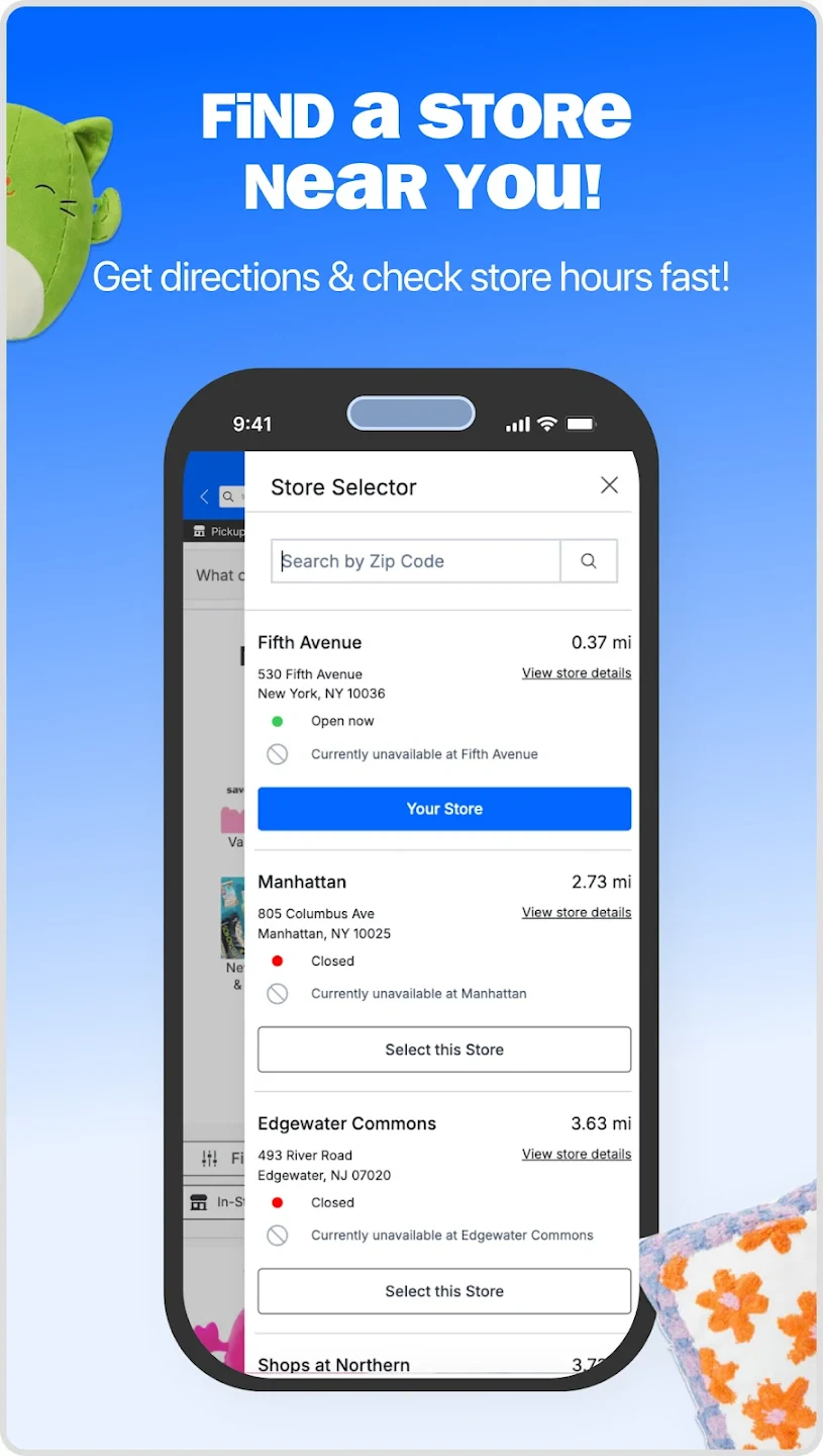 • Store Directory & Locator: Browse stores by location, zip code, or view your local store details like hours and addresses. This feature helps users find the most convenient place to shop based on their needs and schedule.