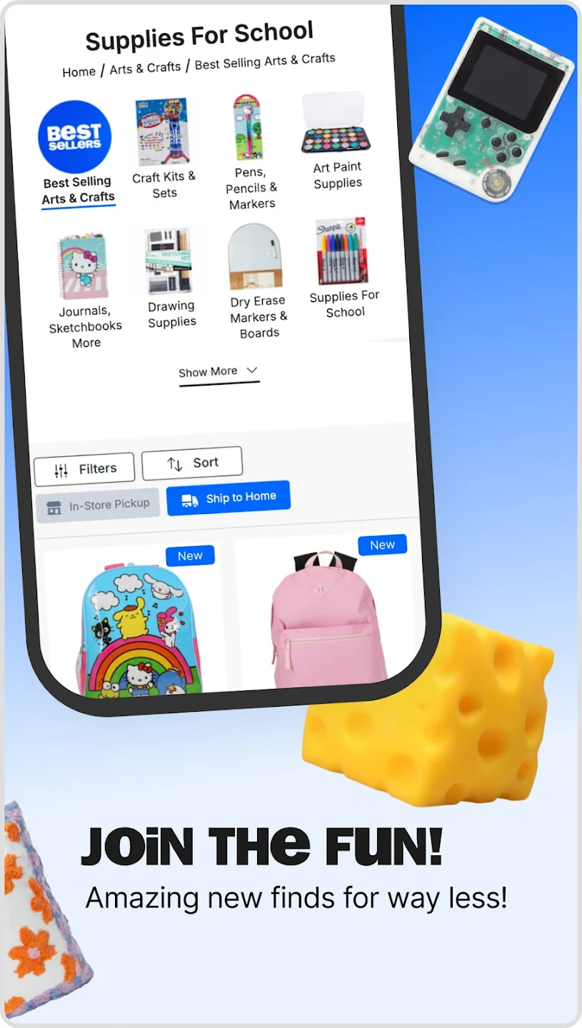 • Browse Categories & Products: Navigate through the wide range of Five Below product categories including electronics, apparel, home goods, and more. The app provides quick access to specific sections of the store, making it easy to find items like electronics deals or trendy clothes.