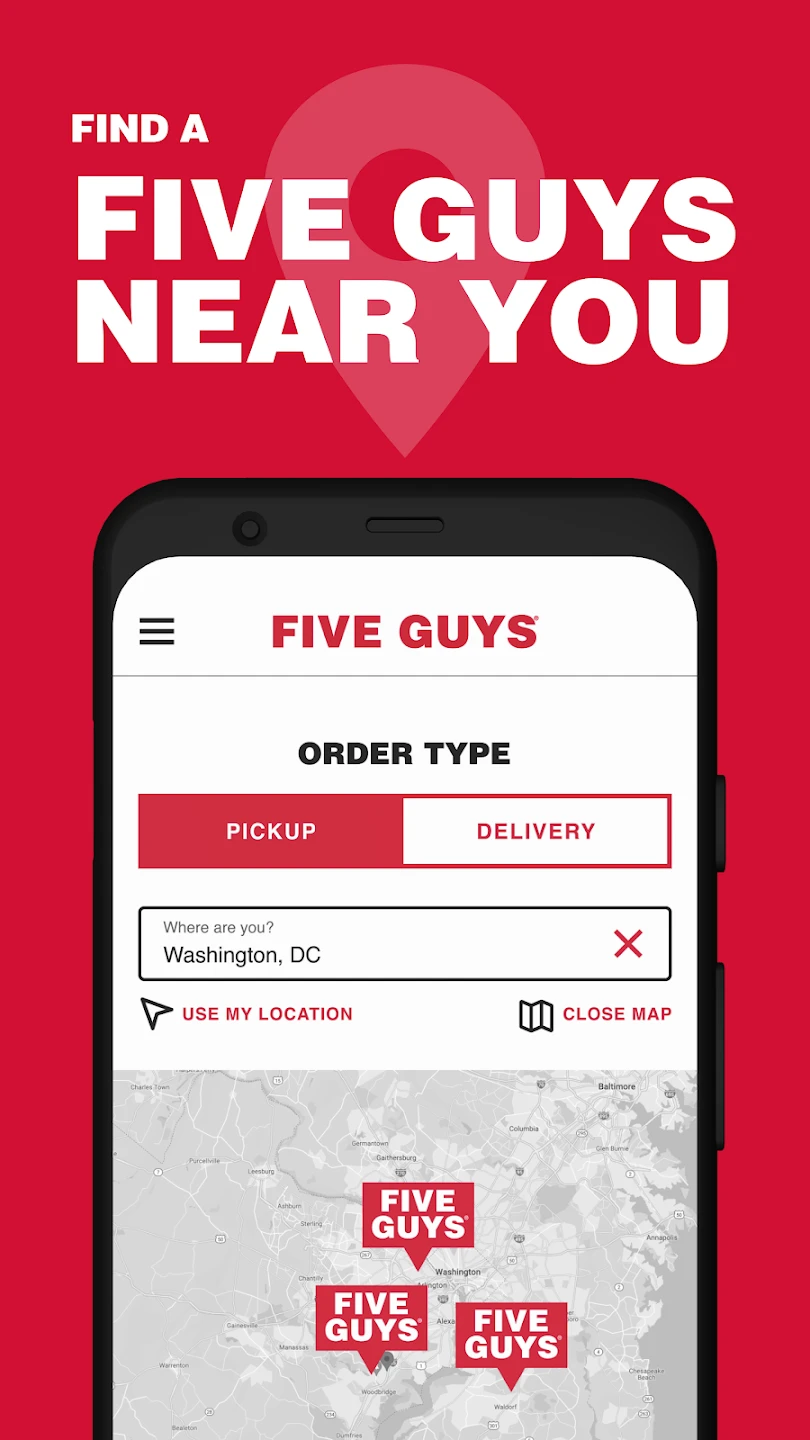 • Mobile Ordering for Pickup: Opt to get your Five Guys meal ready for pickup, specifying the car number or location details to potentially speed up the transaction when you arrive, using the app. Key benefits include reduced waiting time at the restaurant and the ability to pre-order during peak hours.