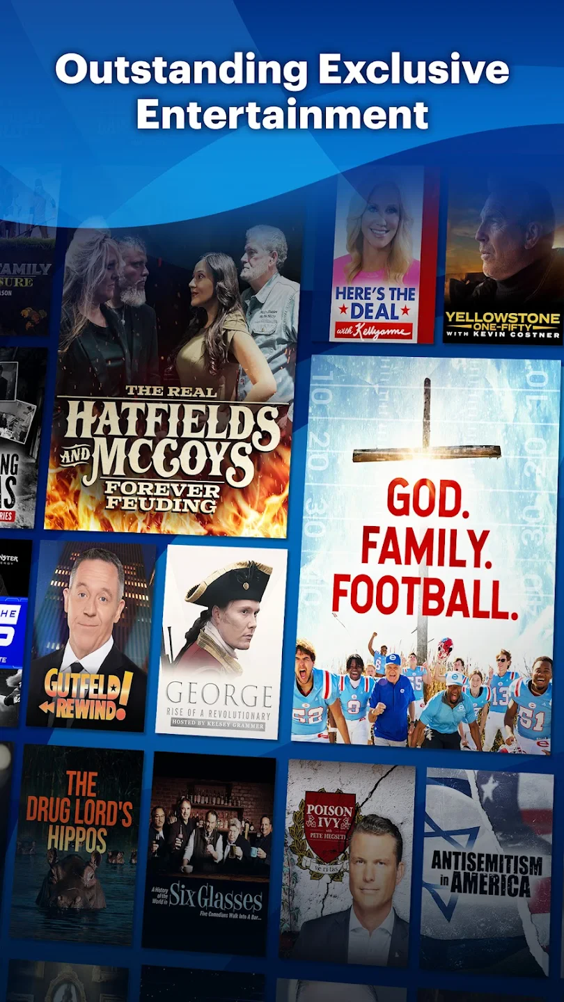 • Premium Content Library: Access a comprehensive archive of FOX Nation’s exclusive political documentaries, deep dives, and special reports. This feature allows you to revisit important coverage or explore detailed analysis on any topic within your saved or relevant collections.