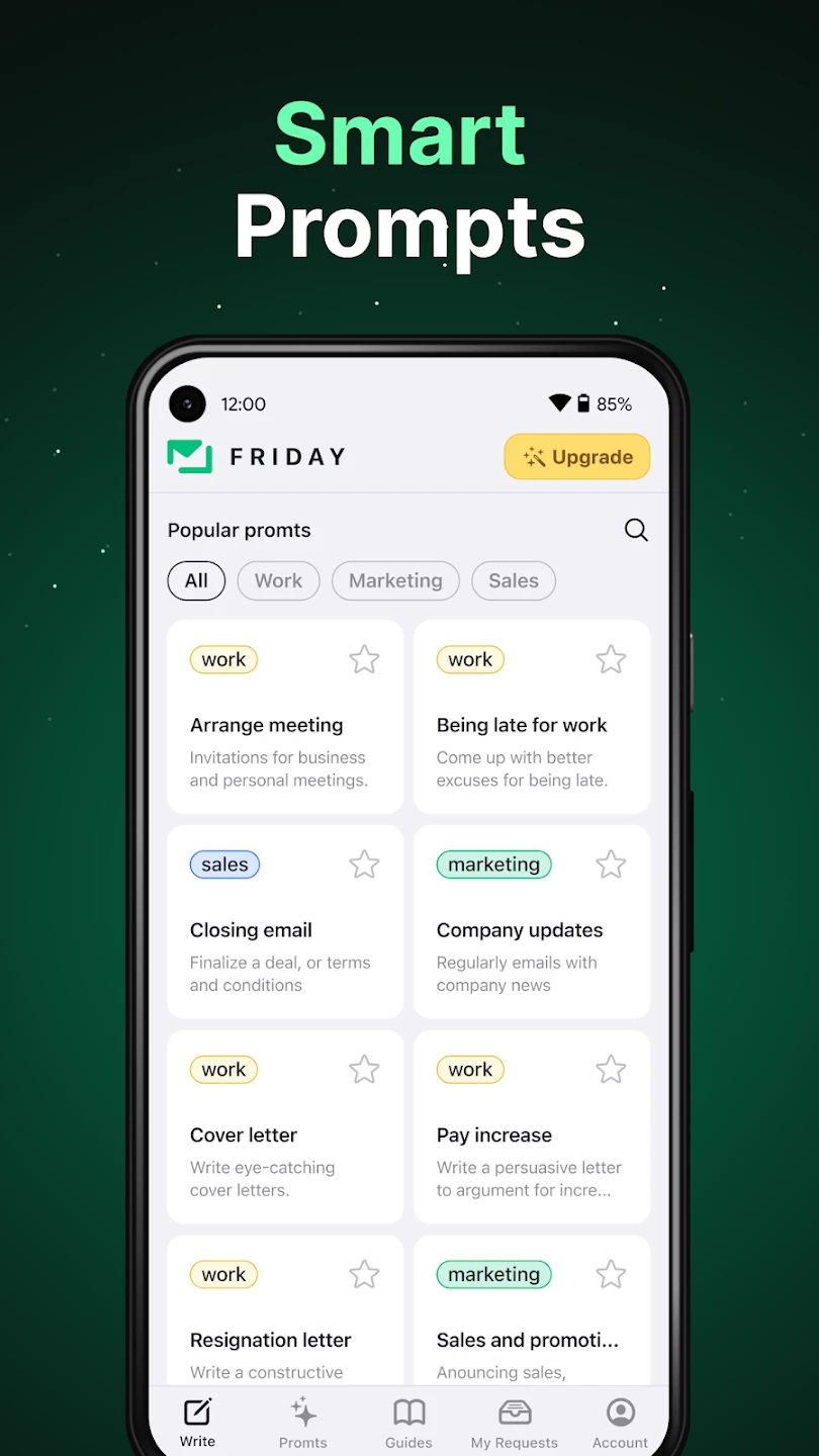 • Intelligent Inbox Organization: Utilizing AI algorithms, the app categorizes, flags, and prioritizes emails based on content, sender, and user behavior. Advanced machine learning enables Friday to understand your communication patterns, significantly reducing clutter and ensuring urgent or important messages grab your attention promptly.