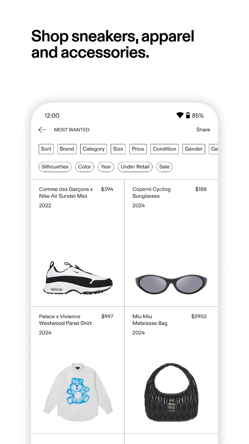 • Advanced Product Filtering & Search: Users benefit from powerful filtering options (by brand, colorway, size, release date, price range) and a smart search algorithm that understands context, making it incredibly efficient to pinpoint specific items quickly, saving users valuable browsing time.