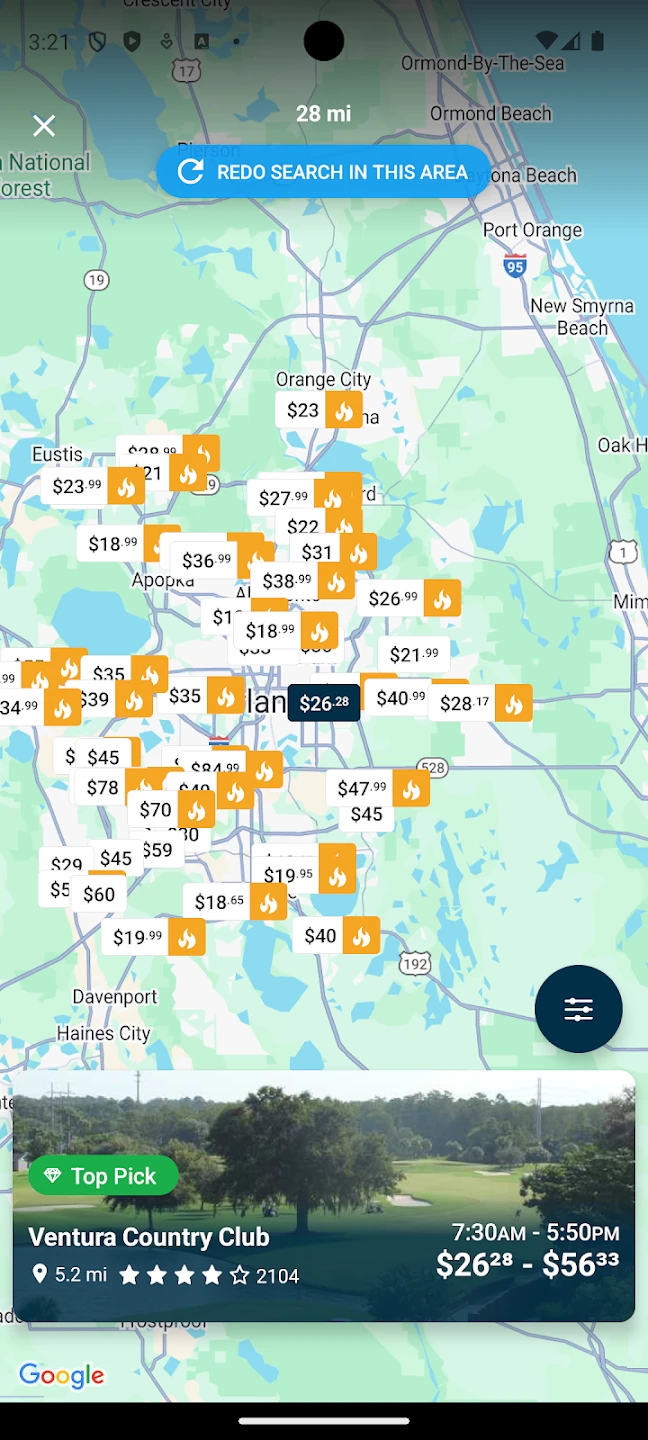 • Additional Travel May Be Required for tee times not located immediately near the user’s home