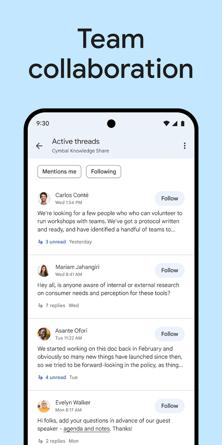 • Advanced Search: Quickly find past messages, files, and information within specific chats or spaces using powerful search filters, saving considerable time compared to sifting through email archives or scattered notes. This feature is invaluable for retrieving crucial details rapidly during project phases or urgent situations.