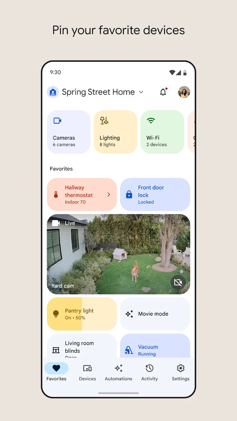 - Camera Monitoring (optional feature): When paired with Nest or compatible security cameras, the app allows users to live-stream feeds, receive notifications, and view camera feeds directly within the Google Home app interface, adding a layer of home security and awareness.