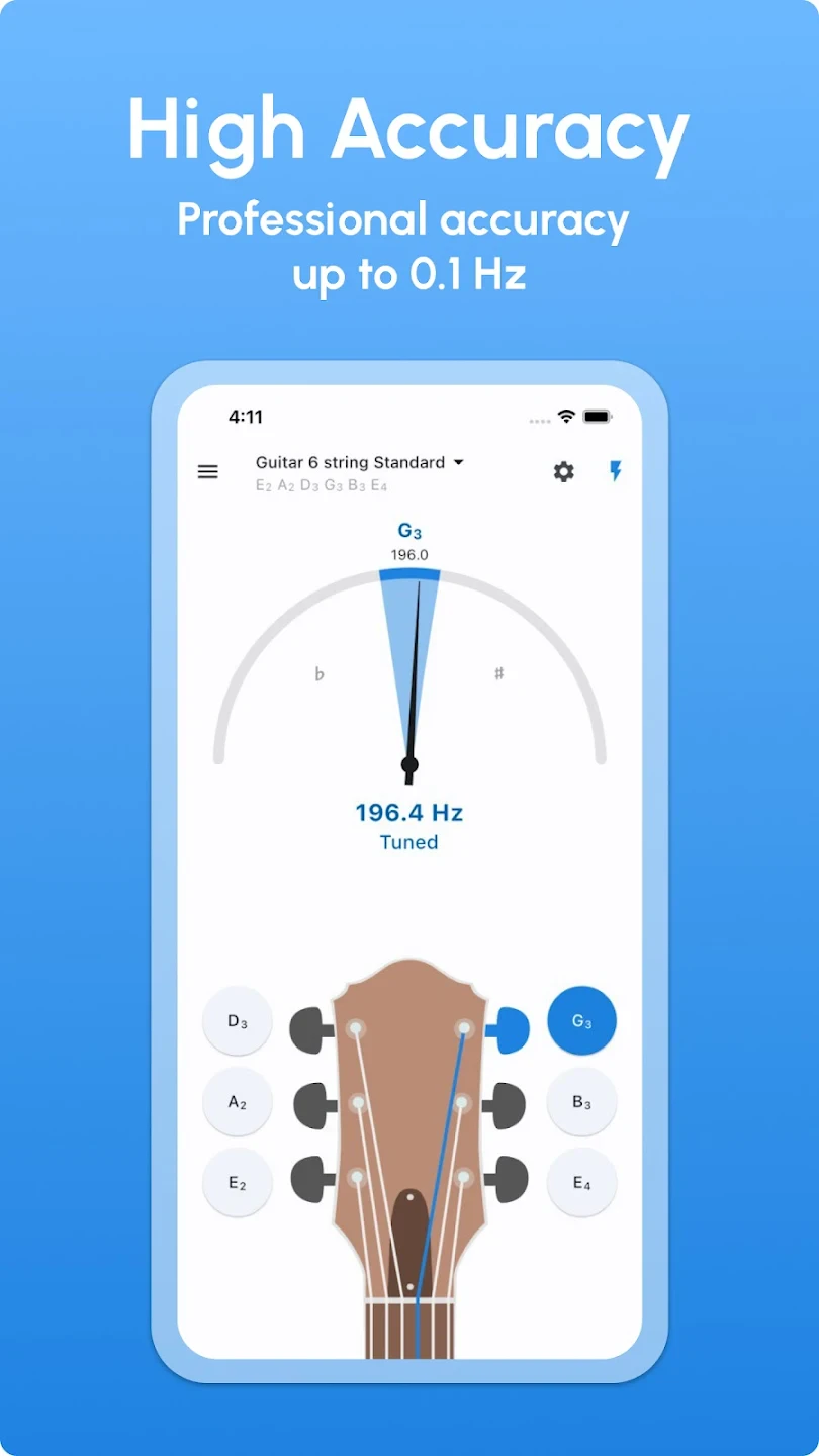 Designed for tuners with more comprehensive needs, this app provides multiple tuning methods, metronome, tuner, and chromatic scale views. It boasts high customization potential and supports various instrument tunings. |
