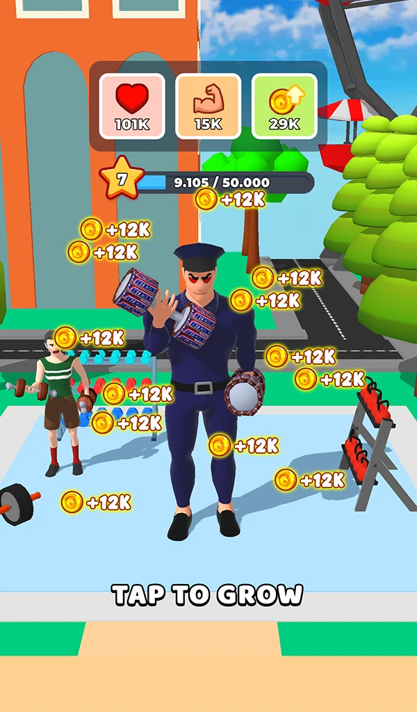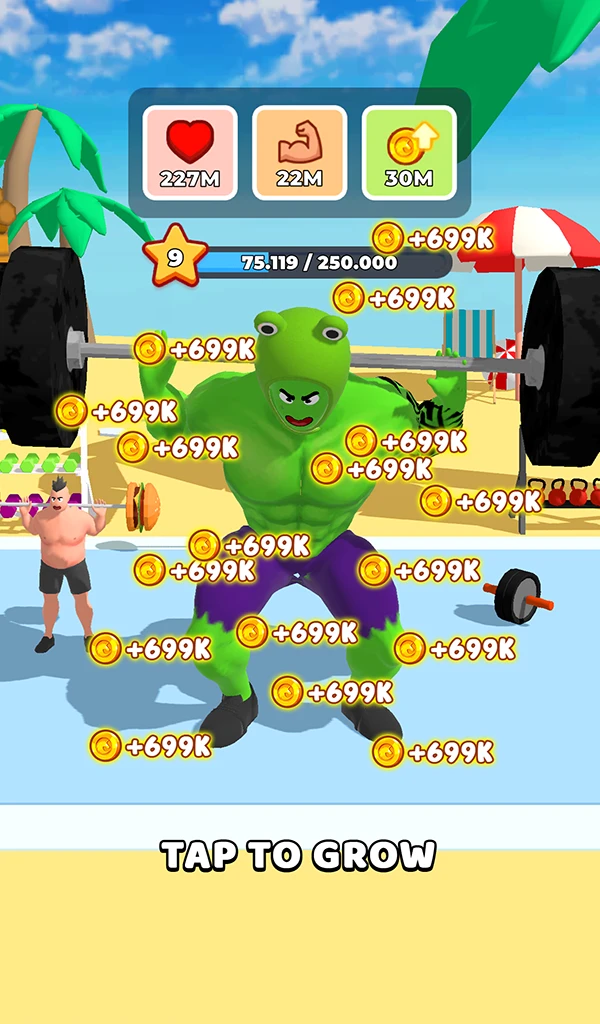 - Step 3: Tap your hero to perform actions (like workouts), earning more rewards. Upgrade your equipment and hero periodically. Monitor resource levels and use currency to expand facilities or tackle the gym’s daily objectives.