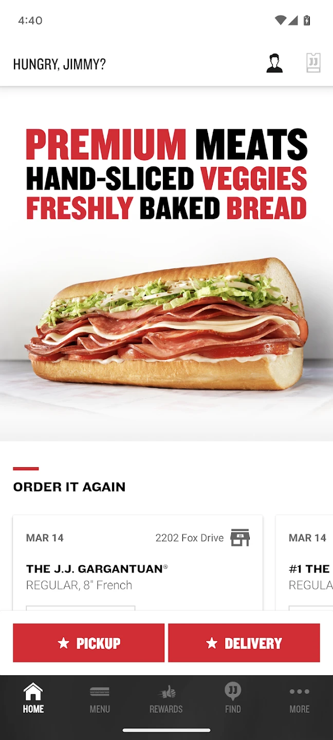 - Store Locator and Pickup/ Delivery Options: Quickly find nearby Jimmy John’s locations and choose between convenient pickup or delivery services directly within the app. Users can even schedule future orders for times like lunch rush or after dinner rushes. Whether you need a sandwich fast for pickup or have time constraints, this feature makes accessing Jimmy John’s options effortless anywhere.