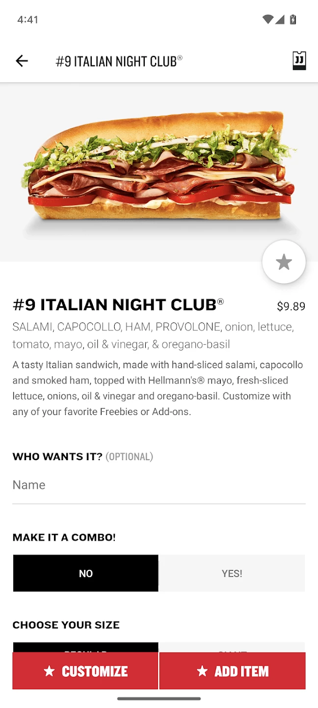 This app offers a similar fast-food sandwich experience with robust customization for their wide variety of subs and wraps. Known for healthy choices and different bread types. |