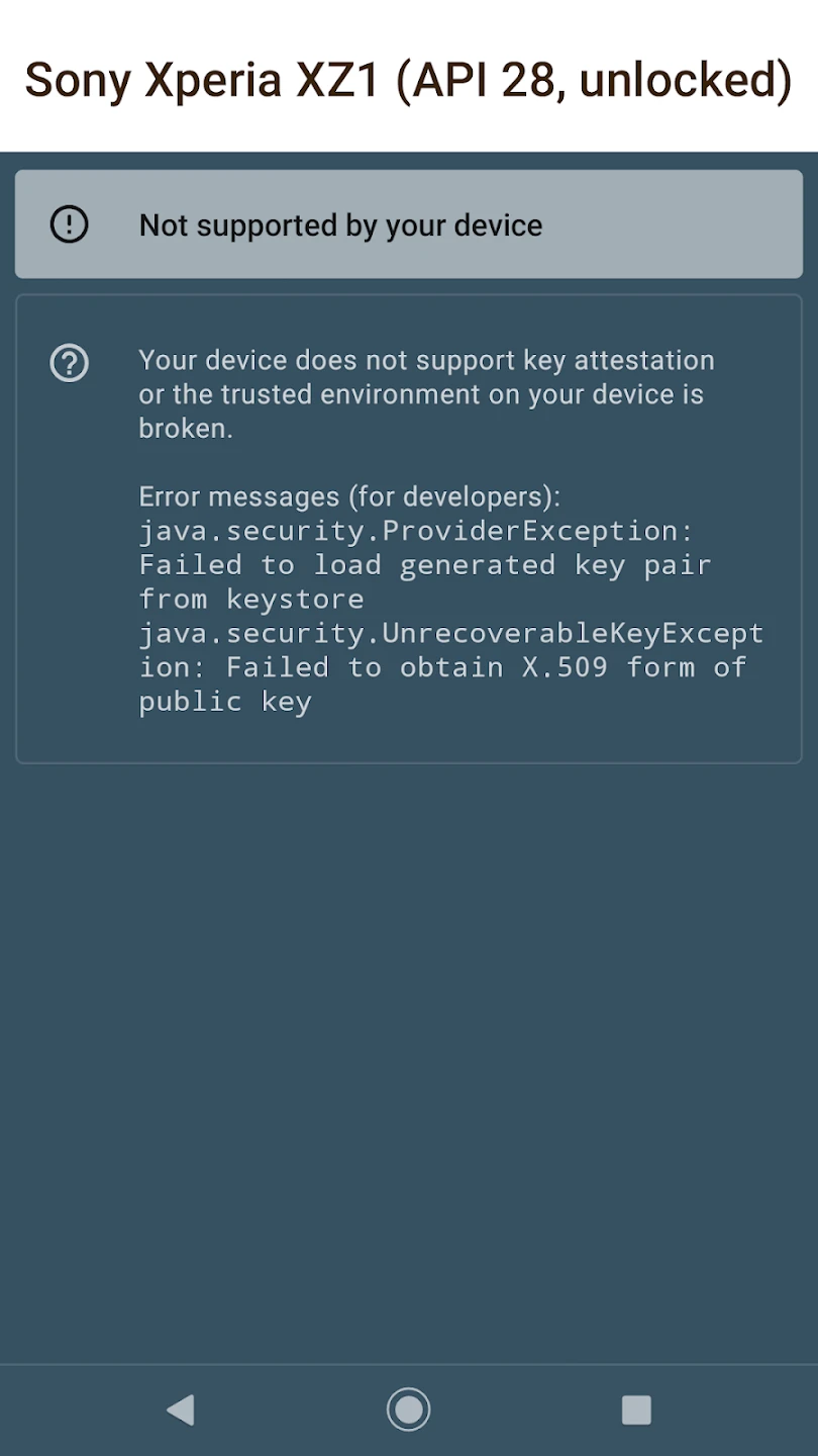 • Key Attestation Simulation: Demonstrates how keys are verified through simulated attestation protocols, using visual feedback to show successful verification or common failure cases. This feature helps developers grasp concepts like attestation chains and trust anchors.