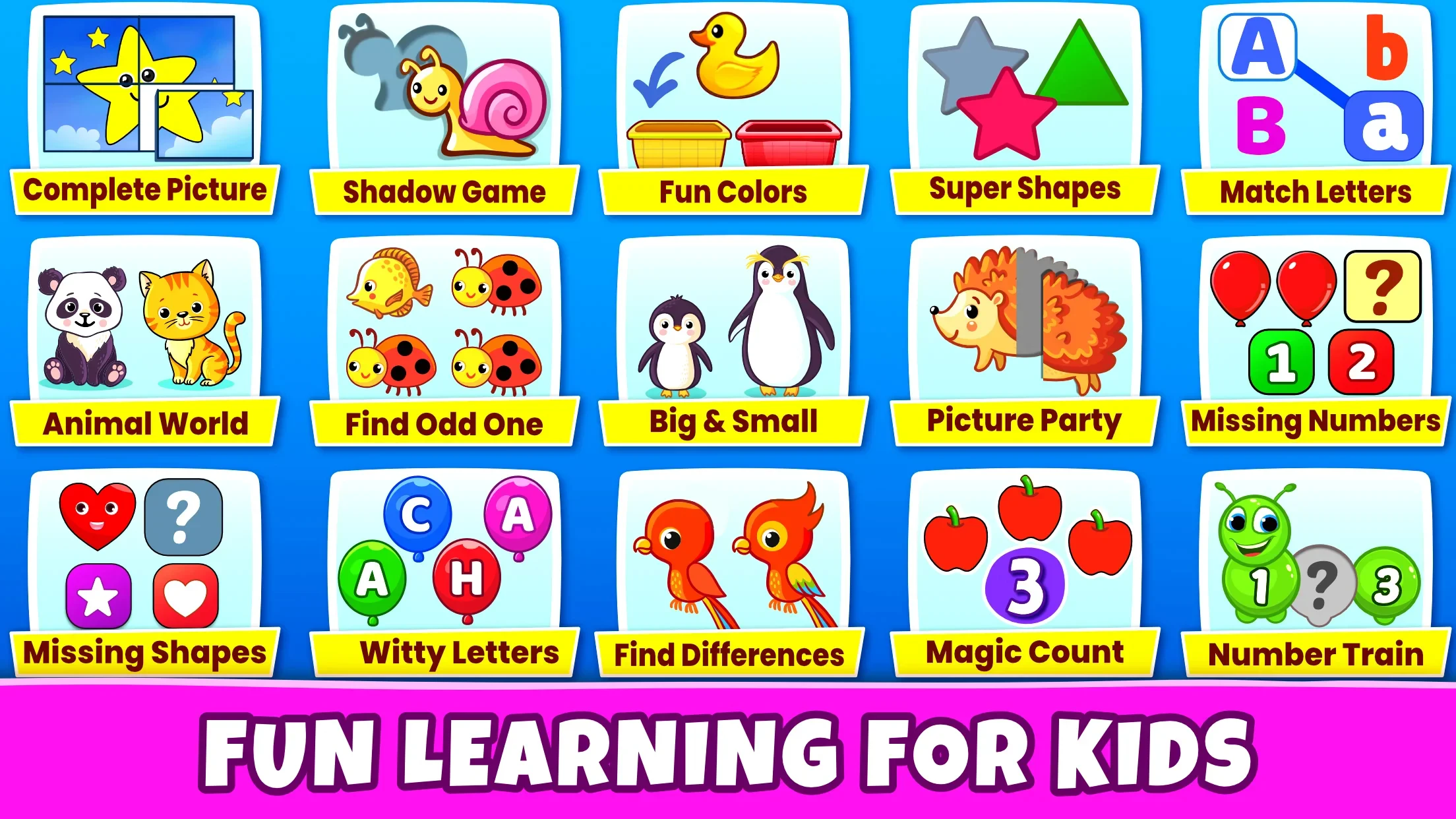 - Multiple Mini-Games & Categories: The app includes various themed sections like Shape Sorter, Color Match, Simple Puzzles, Animal Sounds, and Letter Recognition, offering different activities. These distinct modes provide varying challenges and content discovery, encouraging repeated play as toddlers explore new games within the app.