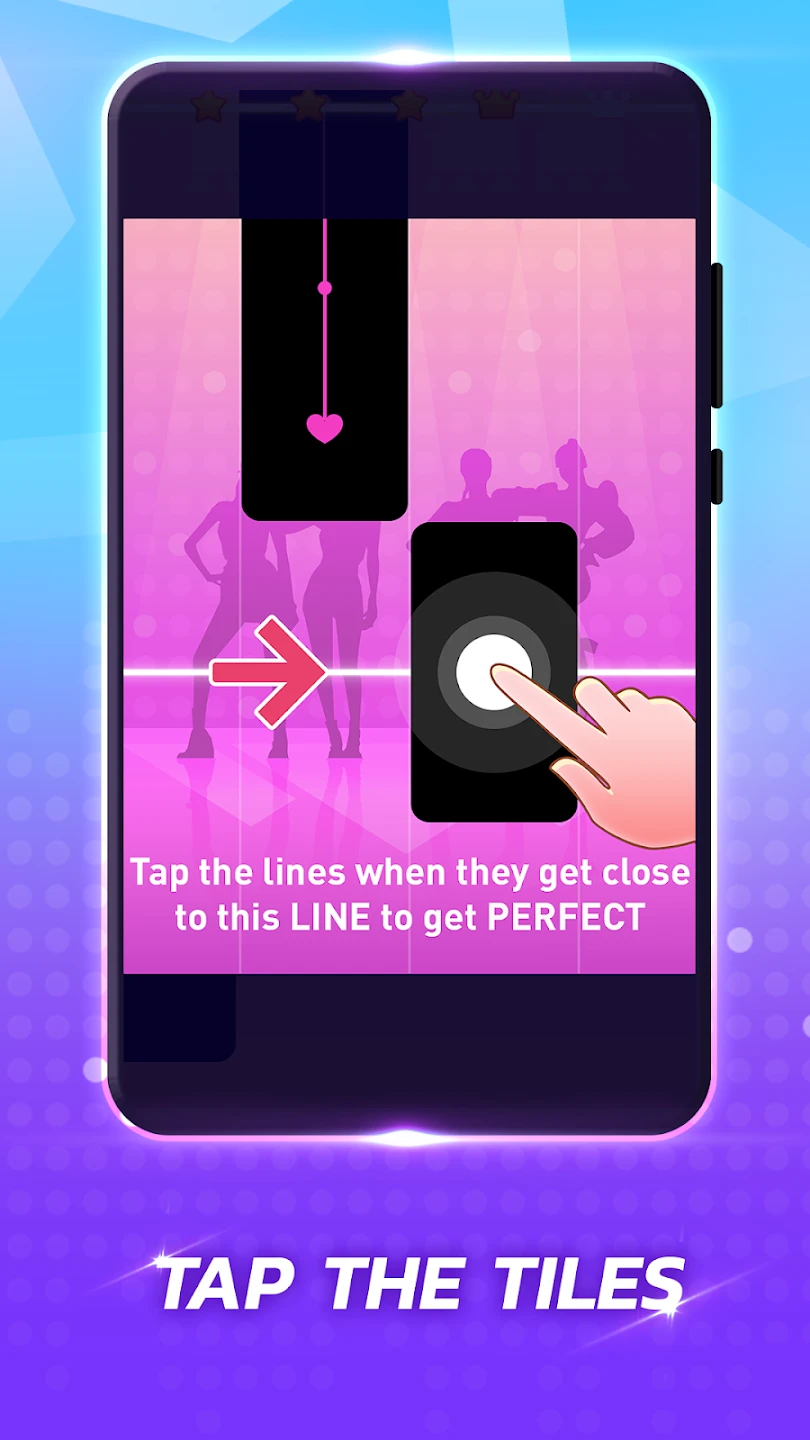 - [Visuals or Art Style]: The game features vibrant, colorful graphics with smooth animations synchronized with the music. Stylized character designs of virtual K-pop idols appear during concerts, while the background adapts to the song’s theme. Neon effects and particle animations enhance the visual feedback during gameplay.