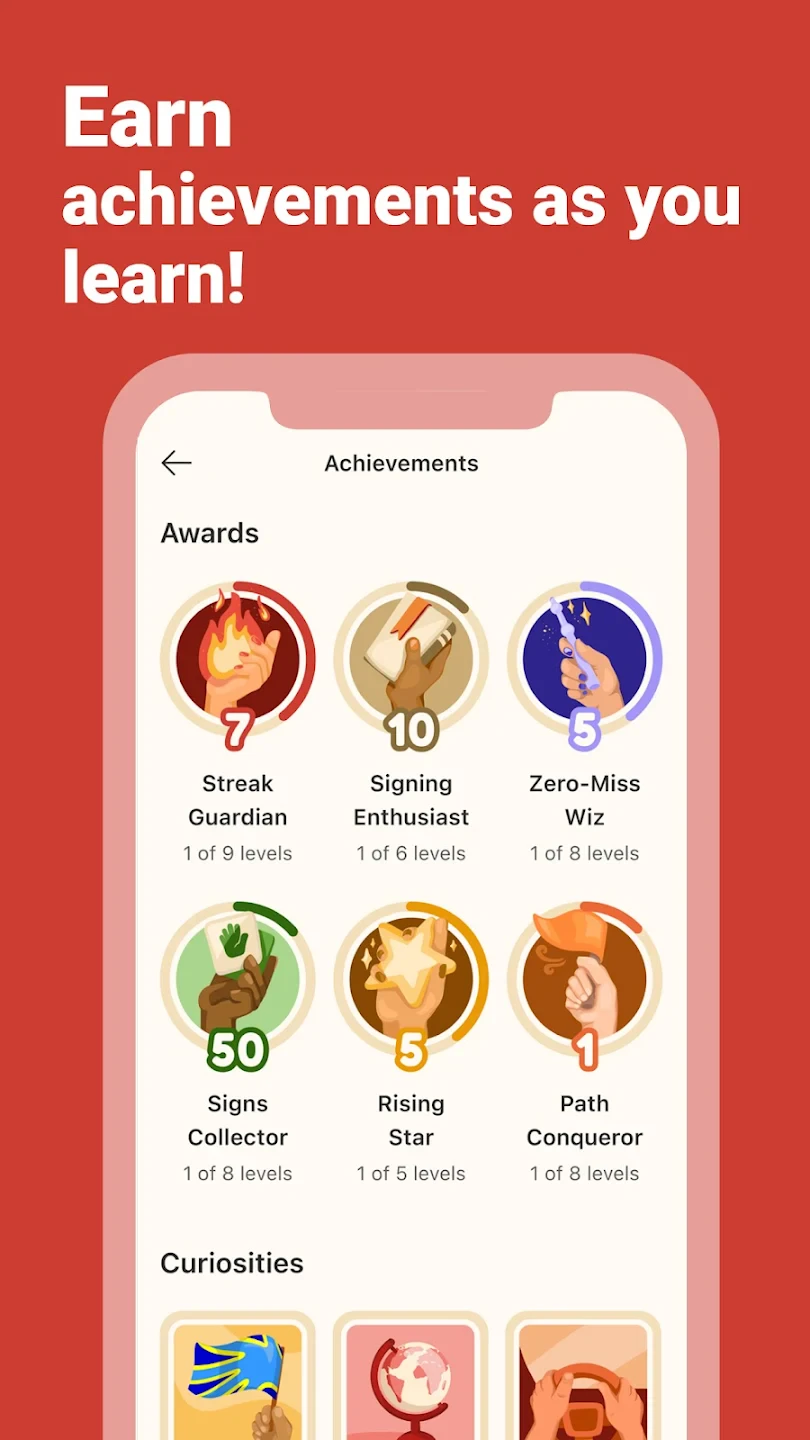 Emphasizes speed and accuracy testing with timed quizzes and a large community-shared content library, perfect for users looking to rapidly expand their practical signing skills. |