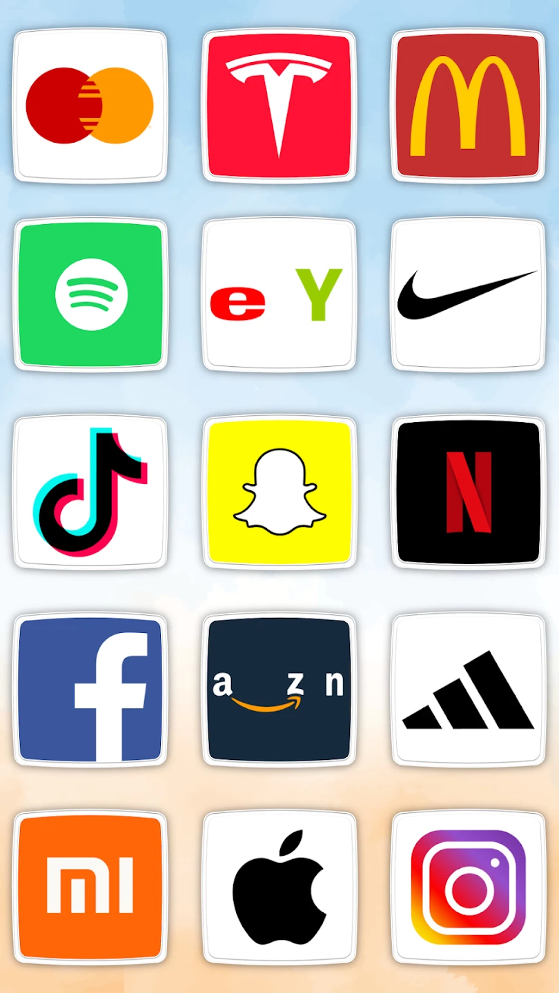 - [Visuals or Art Style]: The game features vibrant, cartoonish graphics with smooth animations, utilizing bright colors and stylized logo representations. Pop-art style branding and playful transitions bring the logo identification process to life with energetic visual feedback.