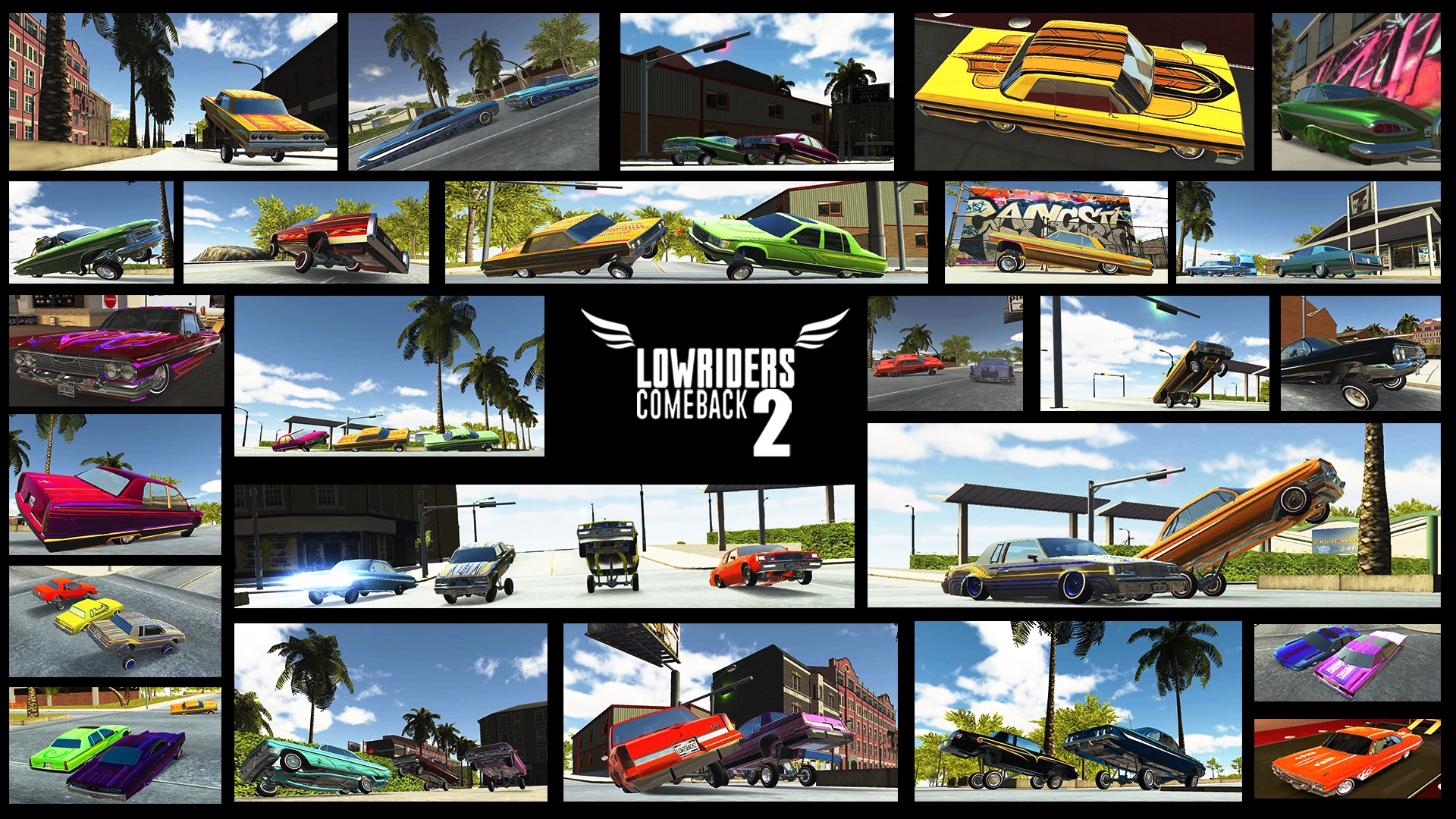 - [Modes or Levels]: “Lowriders Comeback 2: Cruising” primarily features an endless campaign mode with increasing difficulty. There are likely multiple difficulty levels, day/night modes, and various track designs to keep gameplay fresh. Unique content includes a robust car customization garage with numerous parts and skins, unlockable characters, special events, and potentially challenging time trials or leaderboards.