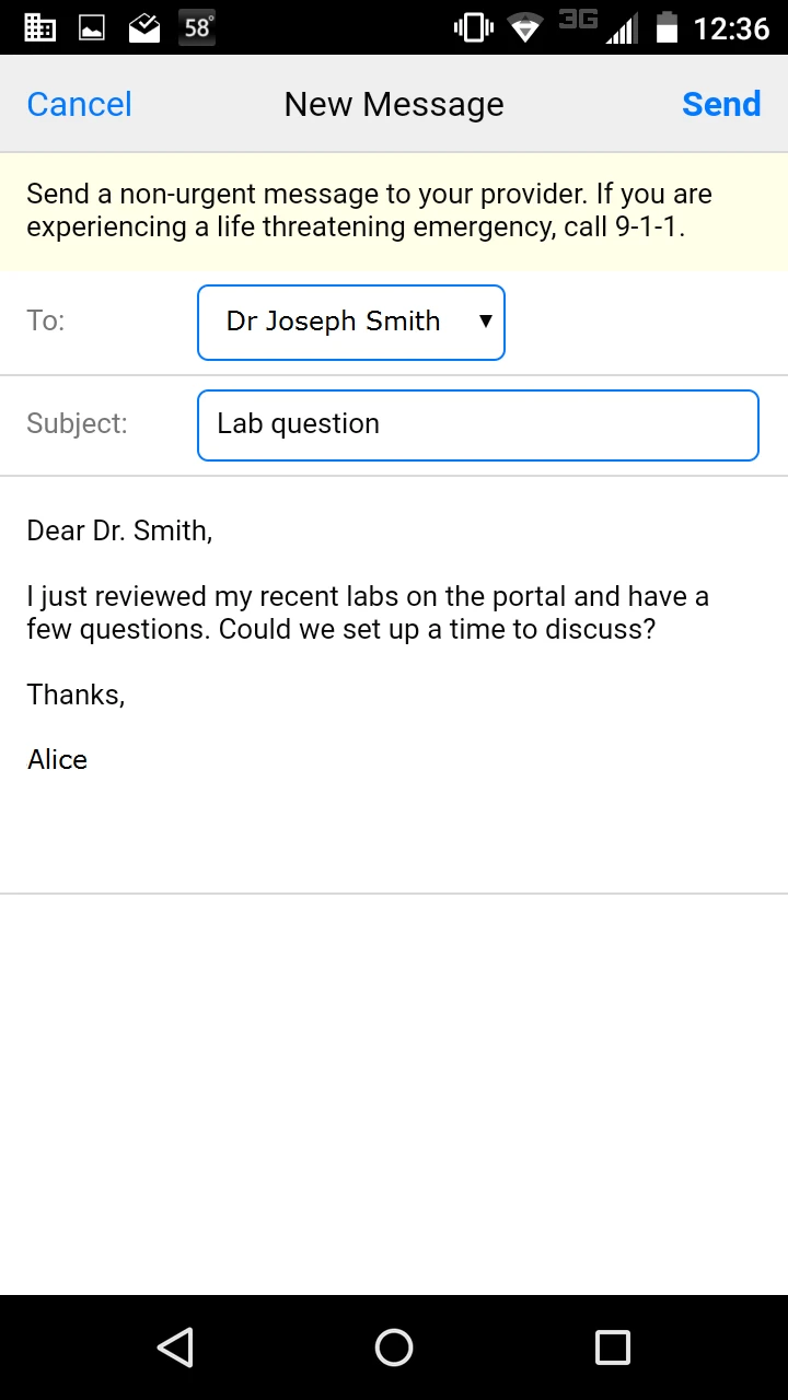 - Secure Message Center: Connect instantly with your entire care team from one place. This feature allows encrypted messaging to physicians, nurses, specialists, and pharmacists, cutting down on phone calls and unnecessary office visits by addressing minor concerns quickly – improving communication efficiency and ensuring more complex issues are promptly flagged for appropriate attention.
