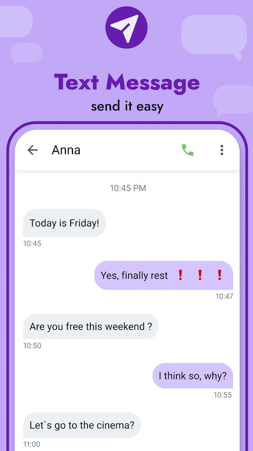 • Media Support (MMS): Easily attach photos, videos, and audio clips along with your text messages. This feature is ideal for sharing life moments, visual information, or keeping conversations more engaging and informative.