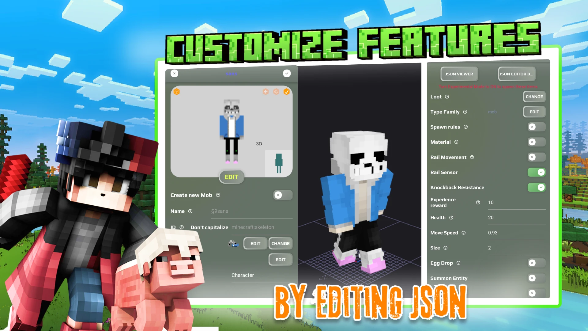 • Extensive Skin Customization: Utilizing built-in tools or image uploads, users can design unique textures and patterns for mobs, enabling the creation of visually striking creatures that fit custom world themes or personal creative ideas.