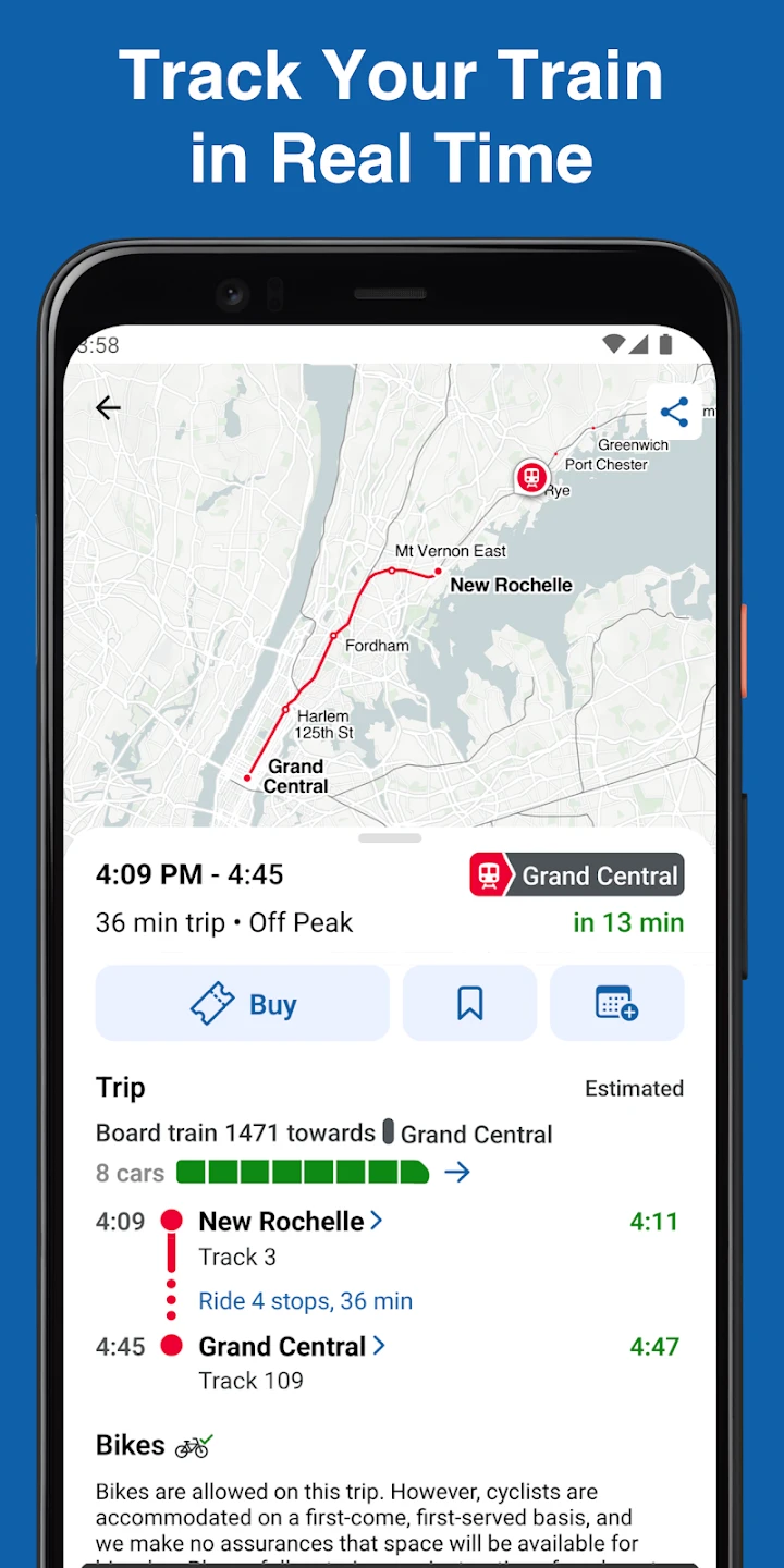 A: MTA TrainTime already includes real-time bus predictions alongside train schedules. It is primarily focused on NYC Transit (A-M) subway lines and select Metro-North/Rail services, not local buses.