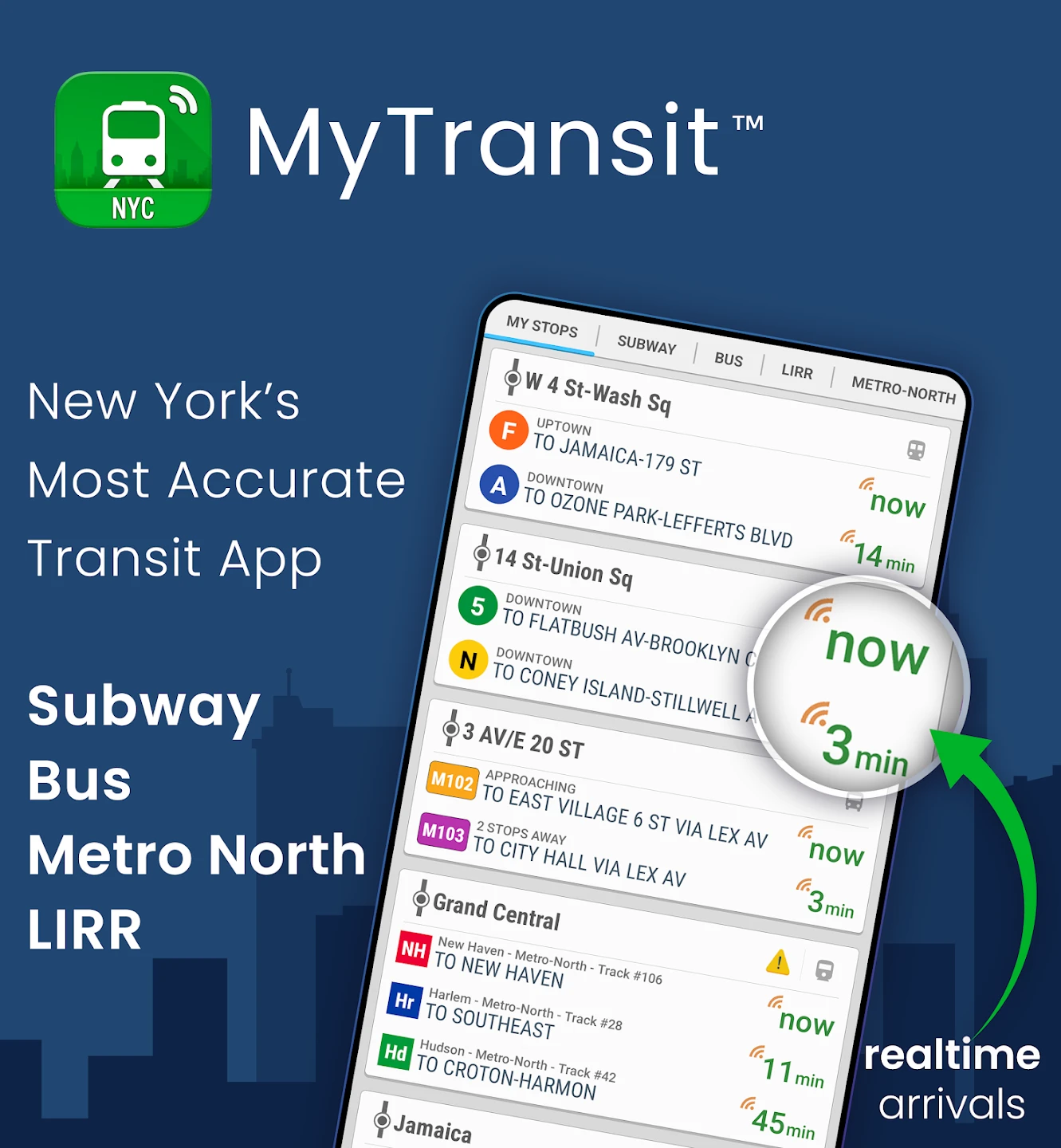 The MyTransit NYC Subway & Bus MTA app provides essential information and trip planning for navigating New York City’s extensive public transportation system. It allows users to find bus stops, plan routes using subways and buses, and view real-time data like arrival predictions, all within your smartphone. Perfect for daily commuters, tourists, and anyone exploring the city.