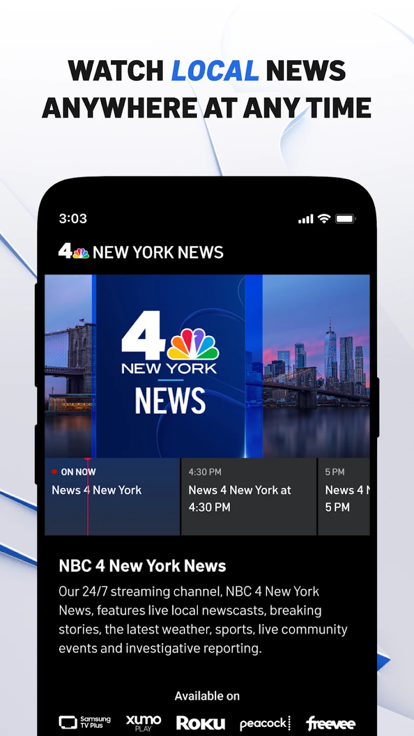 The NBC 4 New York: News & Weather app delivers breaking news, severe weather updates, and local stories from the heart of New York City directly to your smartphone. It provides real-time coverage for all five boroughs, essential information on traffic and sports, and detailed forecasts for the metropolitan area, keeping NYC residents informed and connected.