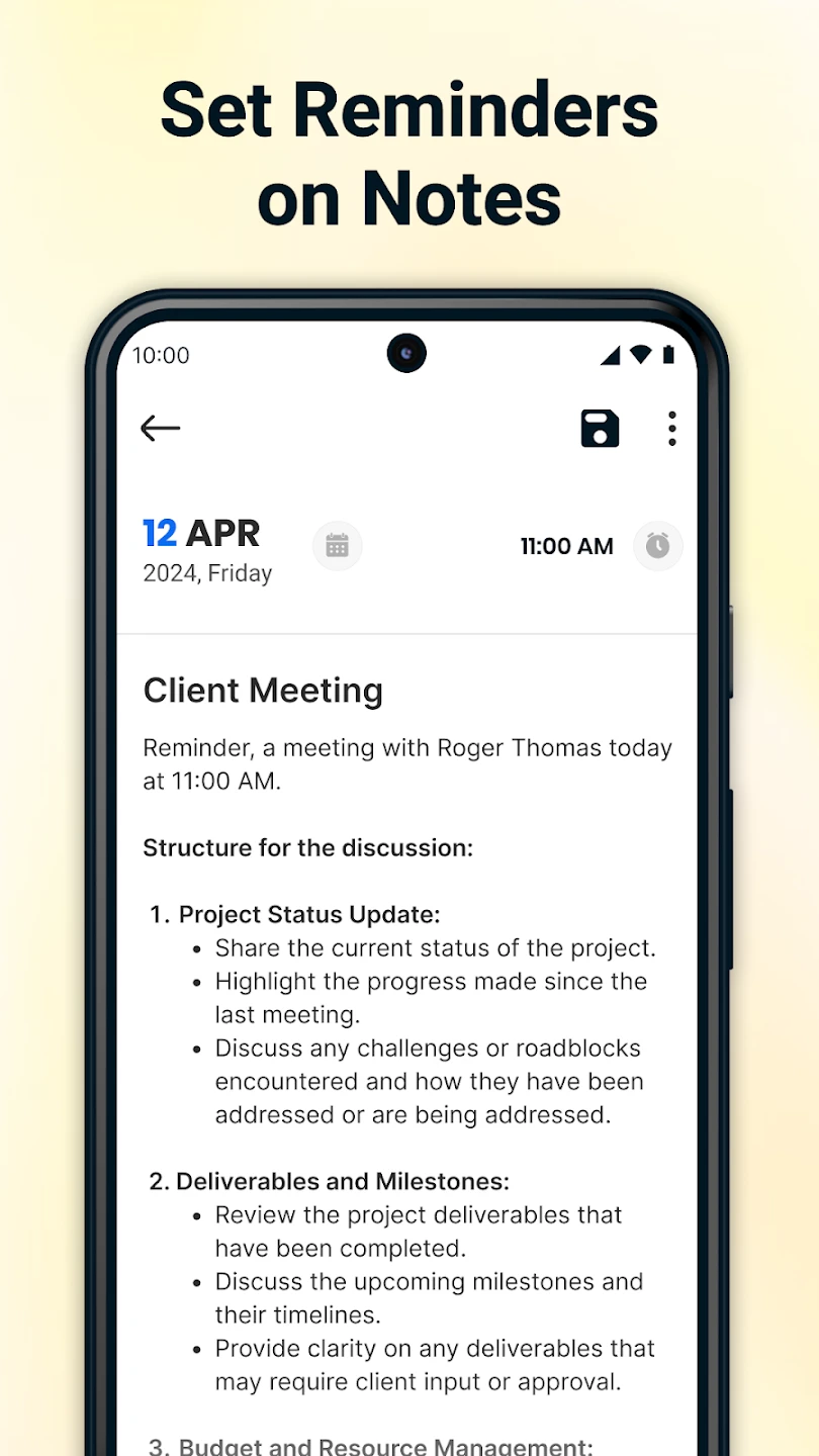 - Auto-Save Mechanism: Automatically save notes as users type, preventing accidental data loss. Key benefits include faster workflows and peace of mind during unexpected interruptions, especially valuable on mobile devices with touch-based input.