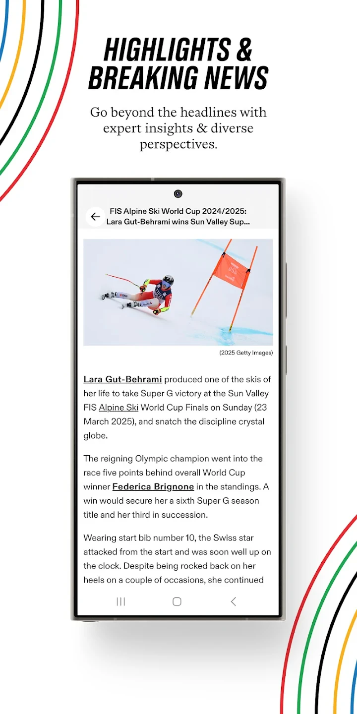 - Video Highlights & News Feed: Immersive content zone sourcing only the biggest moments and latest news directly from Olympic broadcasters. Benefit from dynamically refreshing sources and curated Highlights for quicker discovery of standout performances.