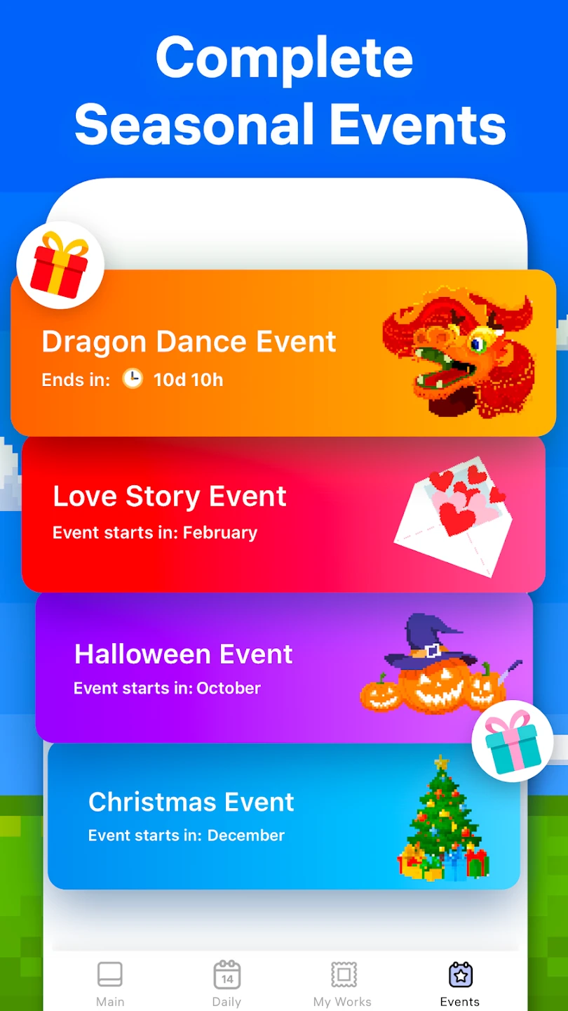 - Visuals or Art Style: The game boasts charming, high-quality pixel art rendered in vibrant colors, featuring detailed designs from animals and fantasy scenes to nature landscapes, all presented with smooth animations and intuitive touch controls enhanced by delicate UI elements.