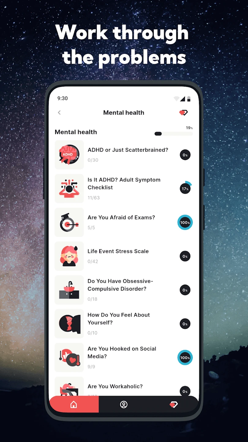 • Standardized Test Library: The app offers a curated collection of evidence-based assessments covering personality traits, emotional intelligence, stress levels, and career compatibility, providing reliable and relevant results tailored to different needs.