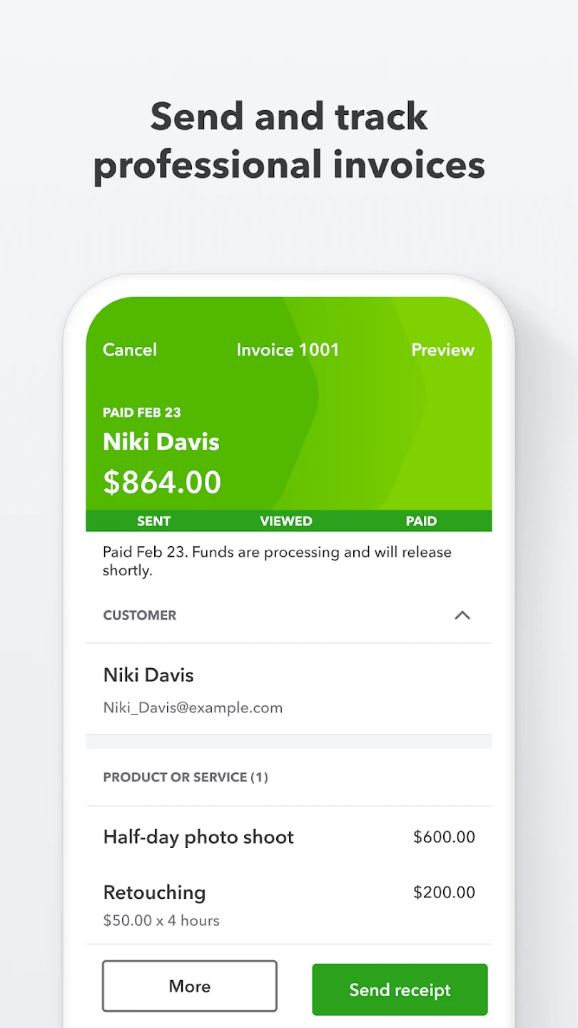 Designed for freelancers with simplified invoicing and project management tools. Emphasizes mobile accessibility. |