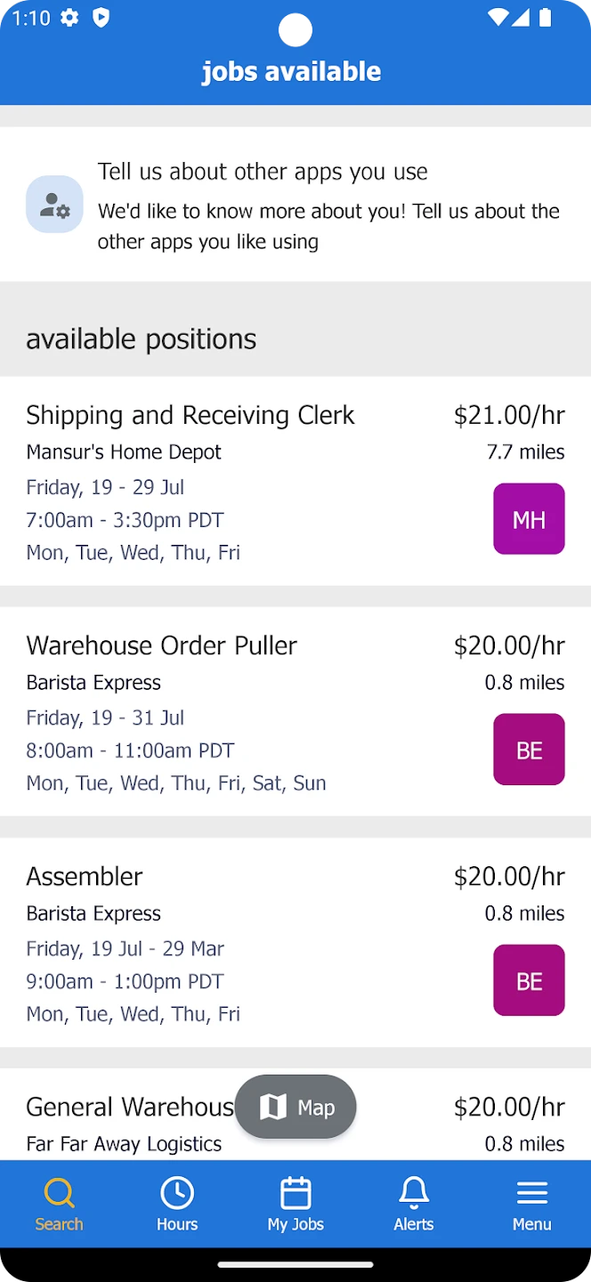 • Job Search with Random Discoverability: Easily browse through carefully selected job suggestions by using the main search function, or alternatively, the app might present a random selection of current vacancies based on your previous searches or profile signals. For instance, if you’re looking for part-time retail work, this feature could surface unexpected yet suitable offers, broadening your job search horizons beyond planned filters and preventing information overload.