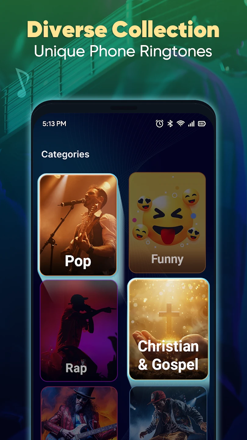- Audio Library & Sound Collection: The app comes equipped with a vast, regularly updated collection of royalty-free audio samples, ranging from classic melodies and nature sounds to futuristic effects and popular movie themes. This extensive library saves users considerable time by offering countless ready-made options to choose from instantly, allowing immediate personalization without external resources.
