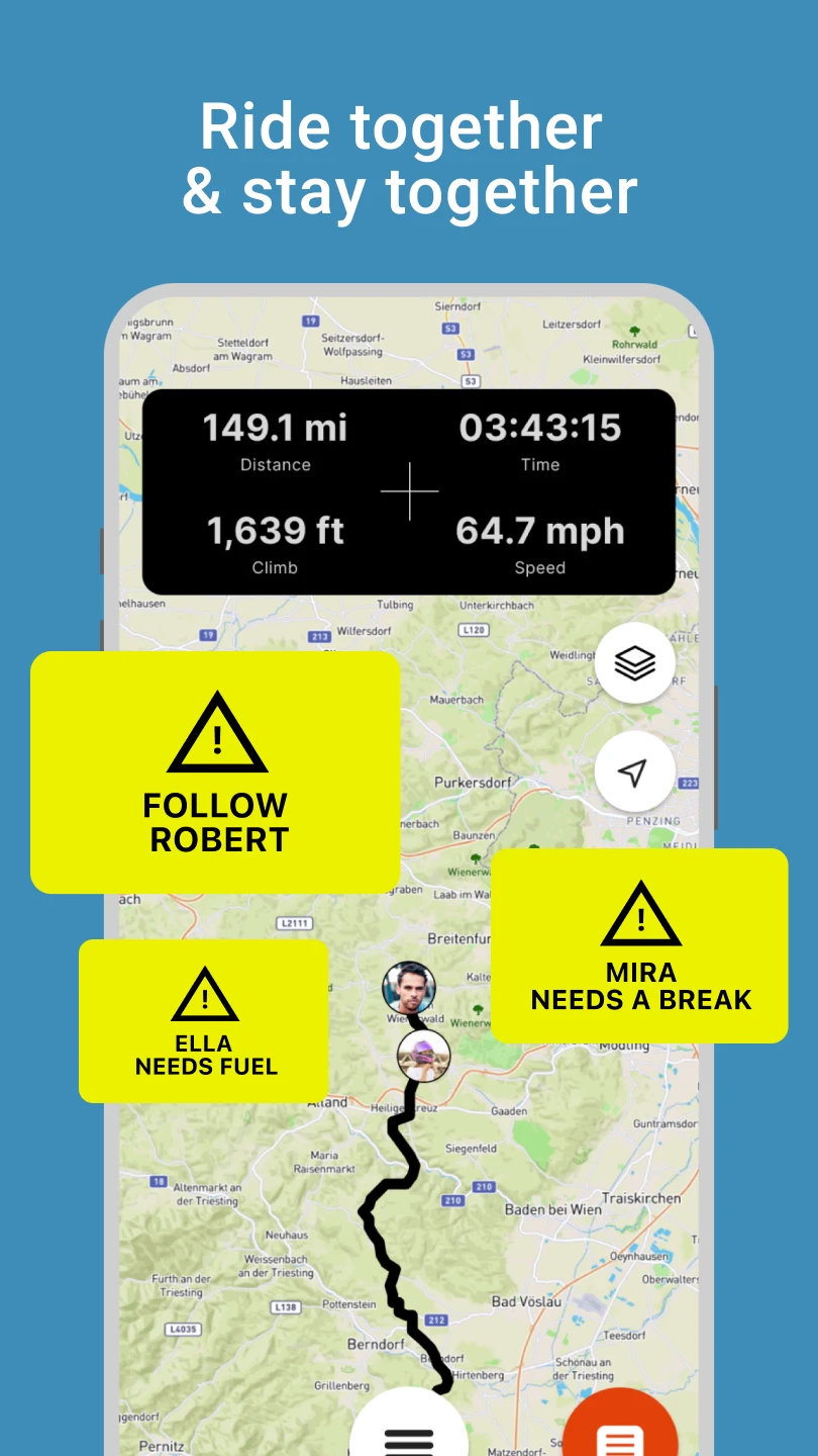 • Ride Tracking & GPS: Automatically records your trip details like distance, speed, elevation gain, and estimated time of arrival (ETA). This benefit helps users monitor their progress and performance, ensuring safety by tracking speed limits or reminding them when scheduled stops are due, perfect for long journeys.