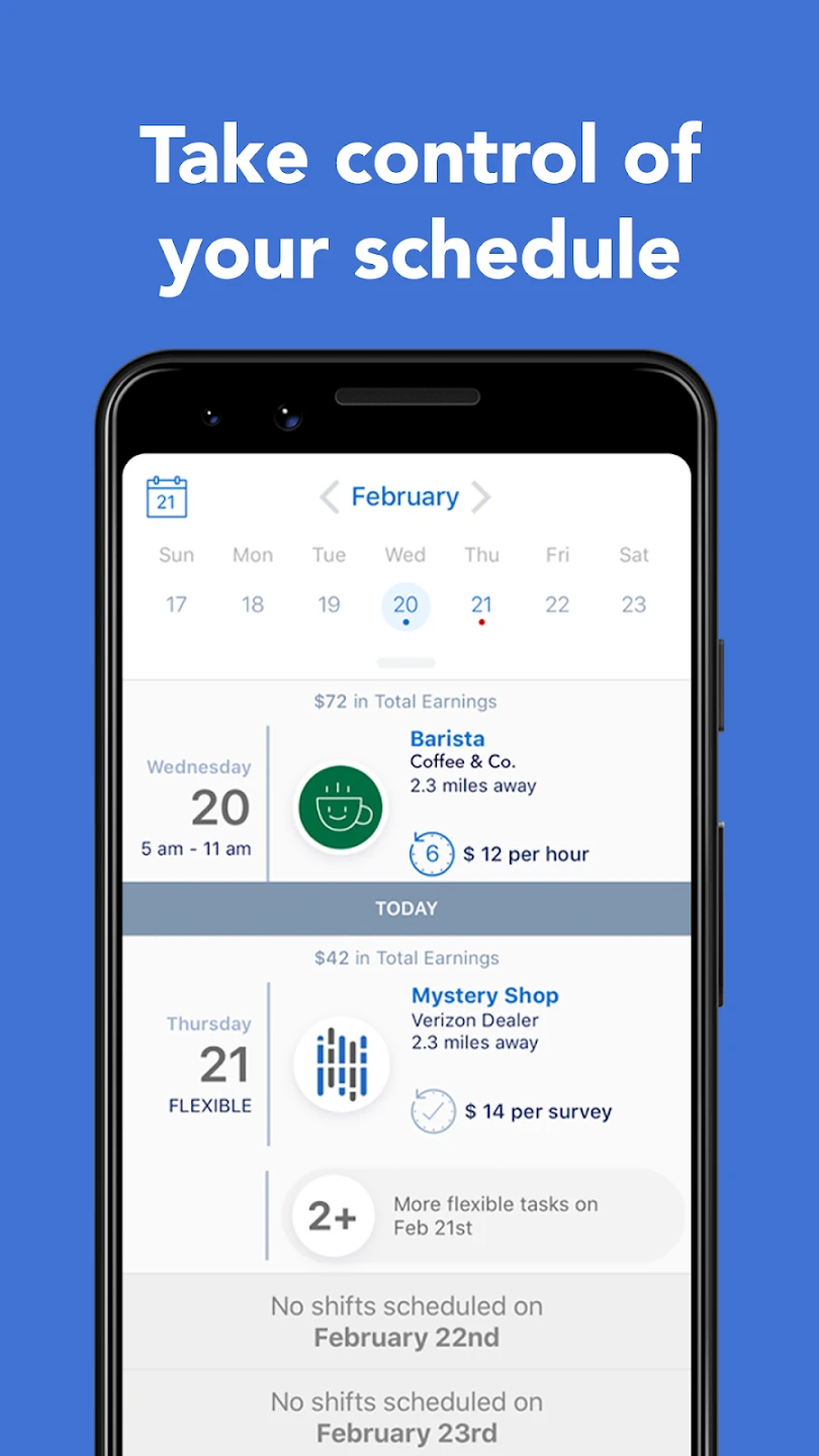 Another popular platform focused on finding last-minute shifts; offers features like job notifications, direct chat with businesses, and tools for managing applications across different locations or job types. |