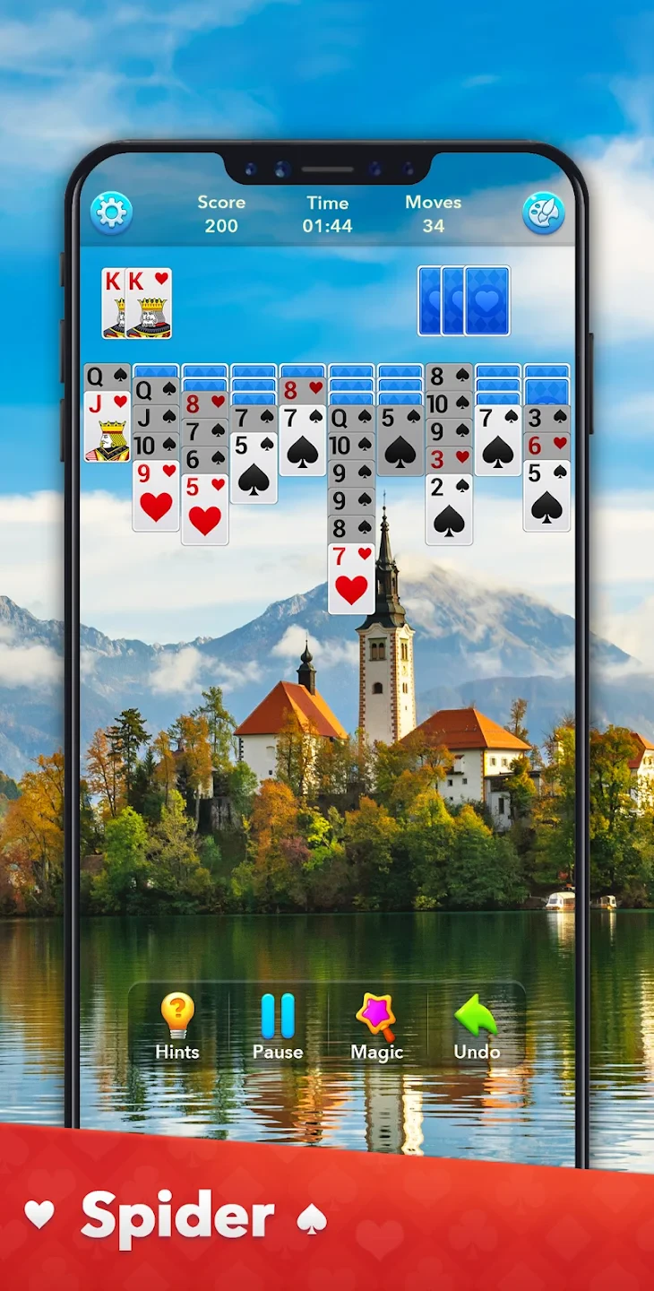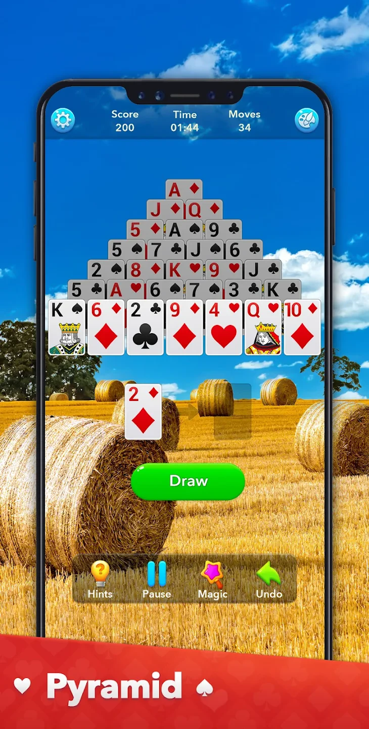 - [Visuals or Art Style]: The graphics are typically clean, colorful, and polished, with card designs that can range from classic elegance to stylized or thematic depictions (e.g., fantasy, animals). Animations are smooth, enhancing the card movements and pile interactions, making the experience visually engaging and satisfying.