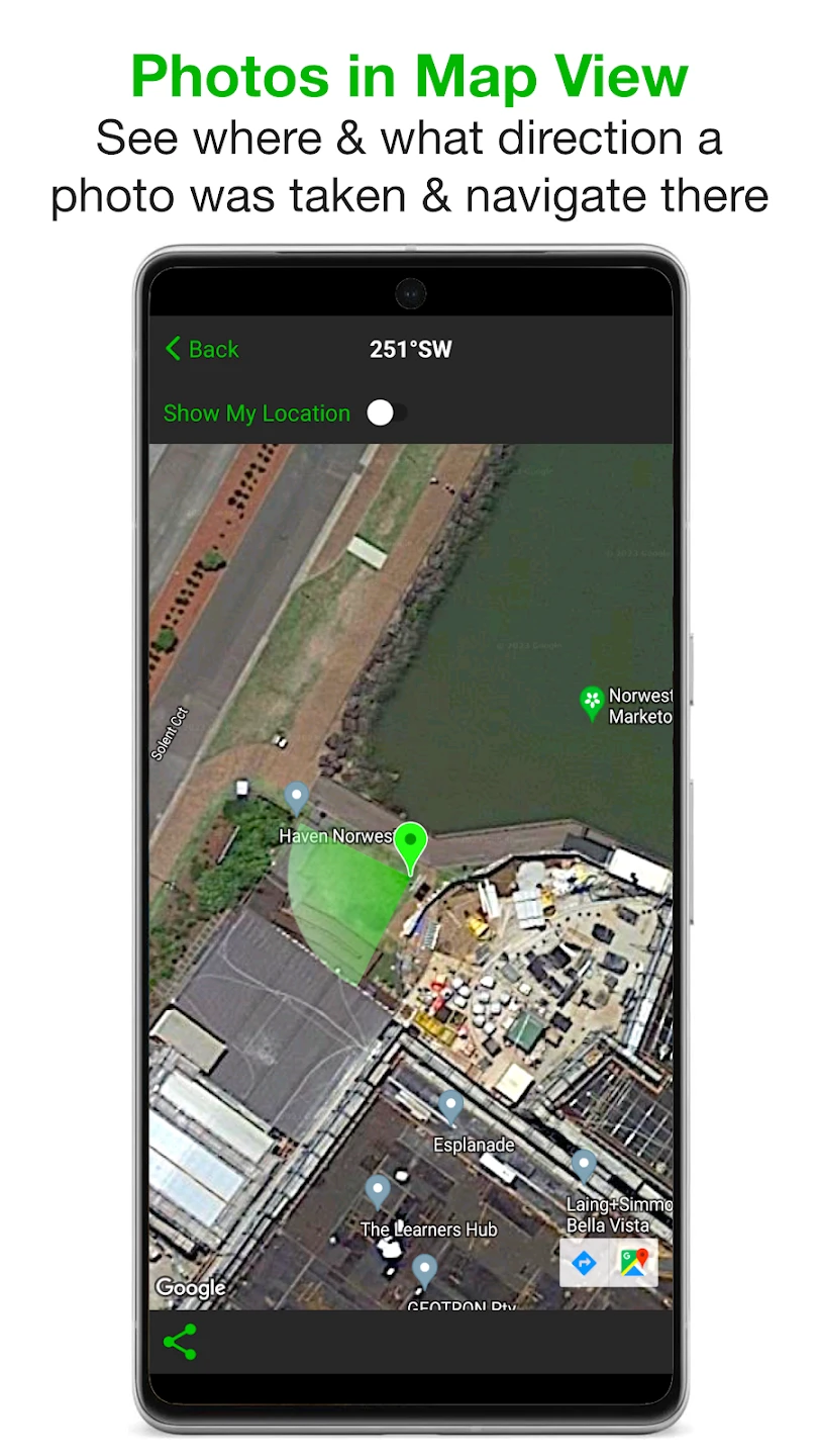 - Automatic Geotagging: Every photo and video taken using Solocator is instantly stamped with its exact GPS location, date, and time, eliminating the need for post-capture editing. This saves significant time, especially in large survey or research projects where hundreds or thousands of images require location data, and ensures the metadata is accurate and consistent from the moment the media is recorded.